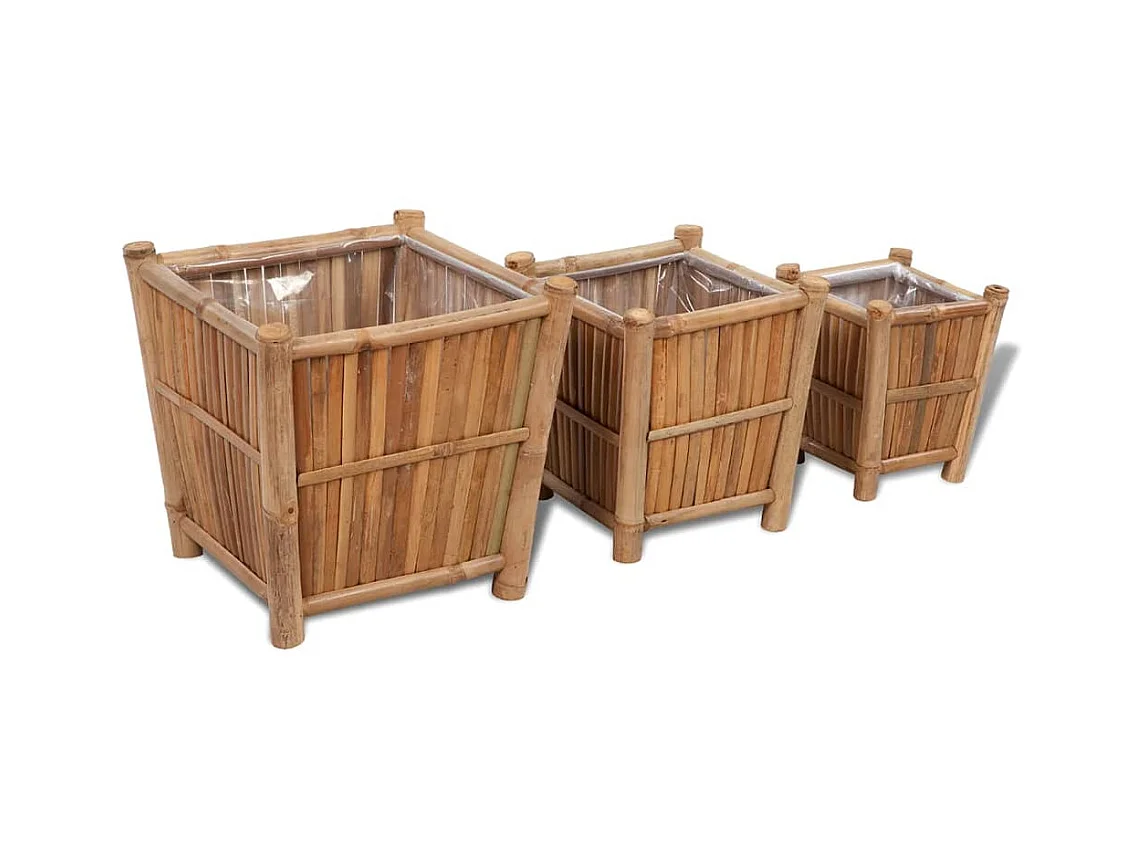 Vasos/floreiras em bambu 3 pcs forro de nylon PT235298