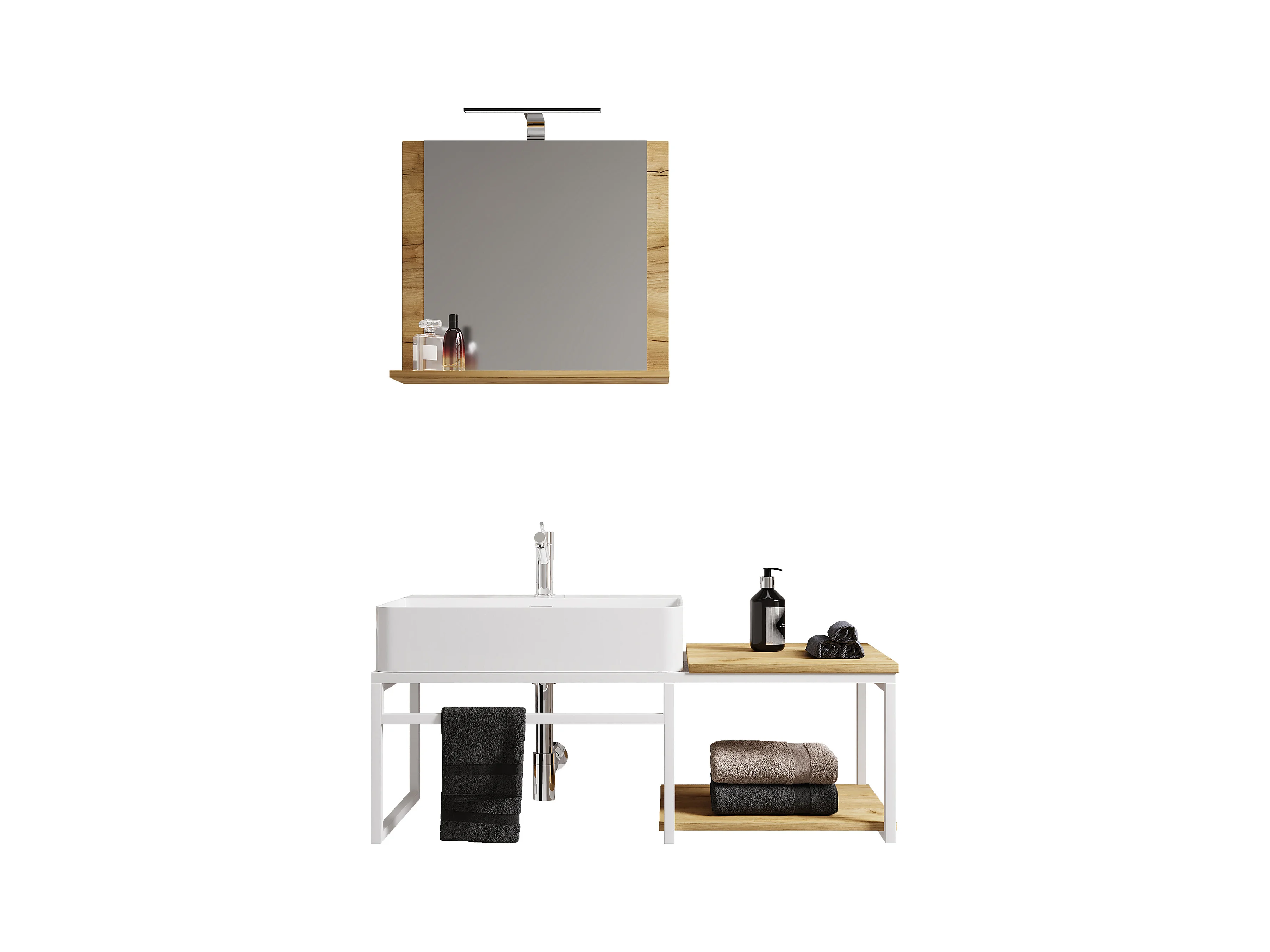 VCM 4 pcs Lavatório Mobiliário Do Banheiro Set Sink Wood Metal Industrial Style Bitila 100 V1 (Branco / Carvalho Mel)