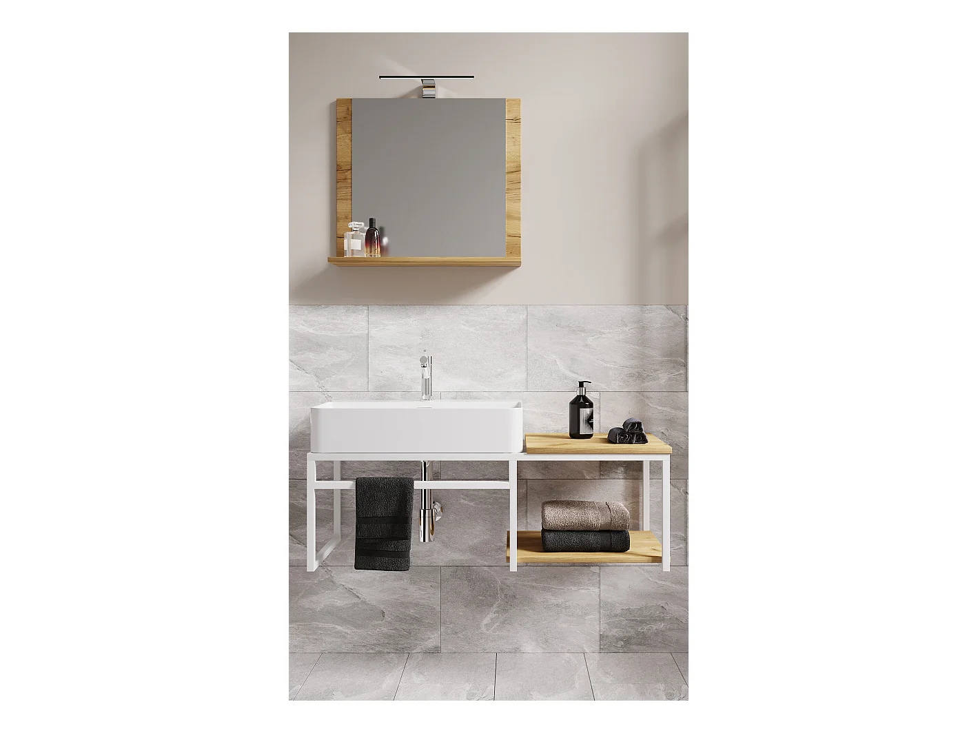 VCM 5pcs Lavatório Mobiliário Do Banheiro Set Sink Wood Metal Industrial Style Bitila 100 V2 (Branco / Carvalho Mel)