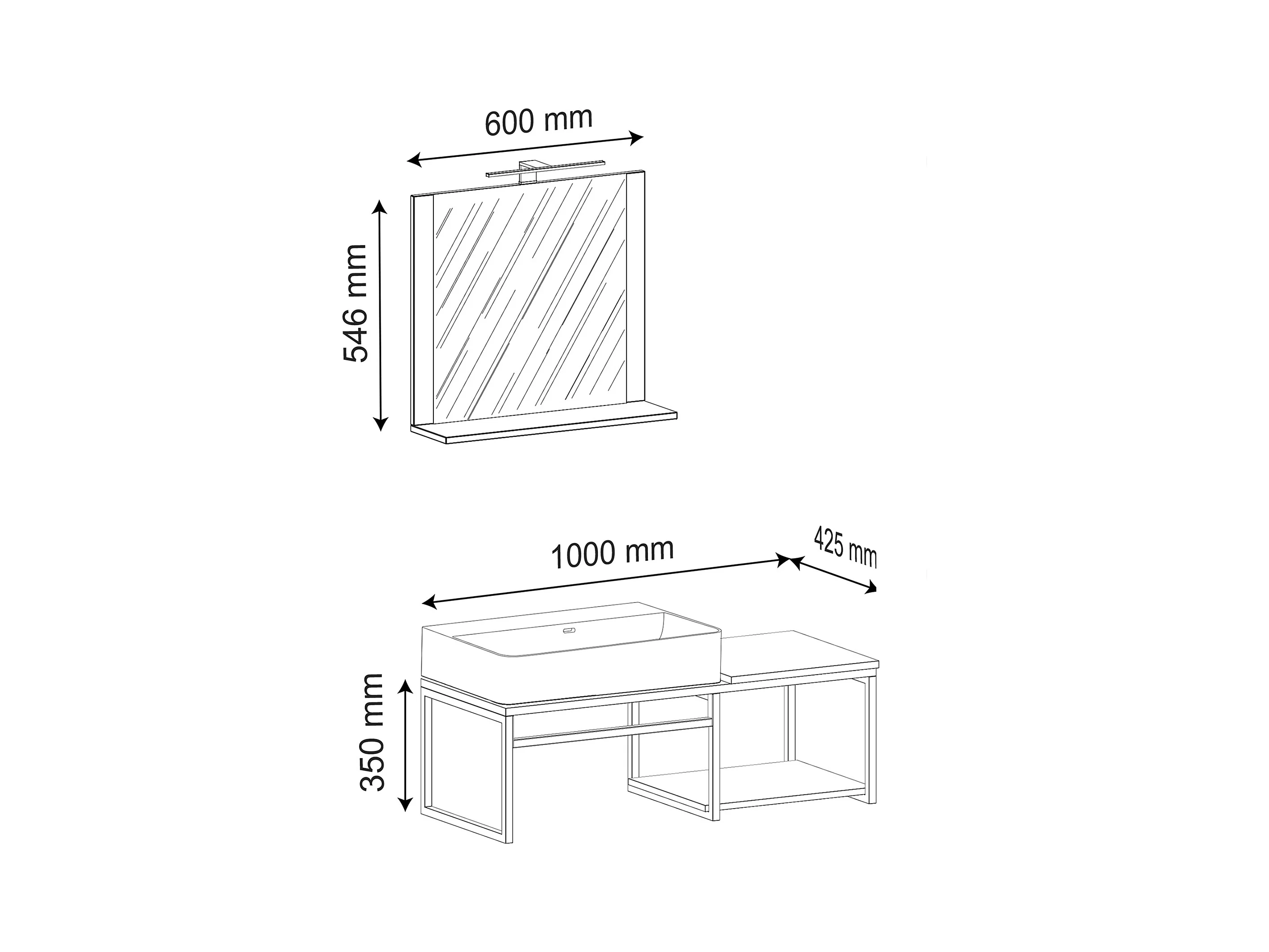 VCM 2 pcs Lavatório Mobiliário Do Banheiro Set Sink Wood Metal Industrial Style Bitila 100 (Branco / Carvalho Mel)