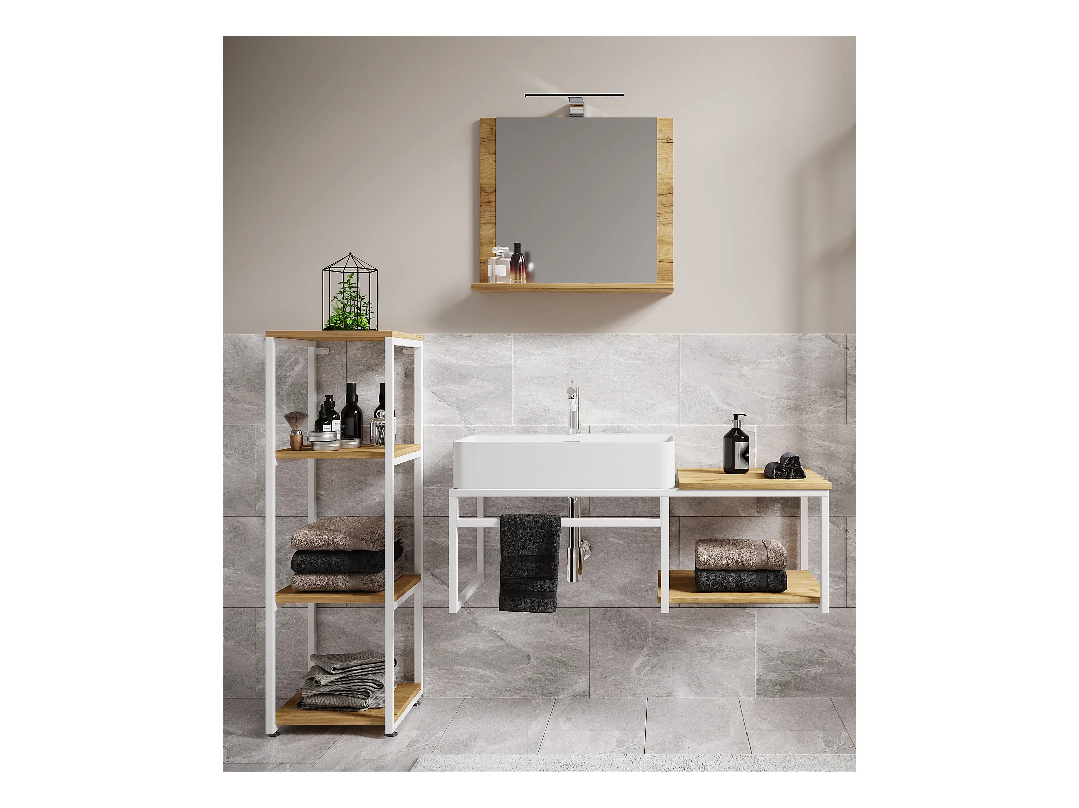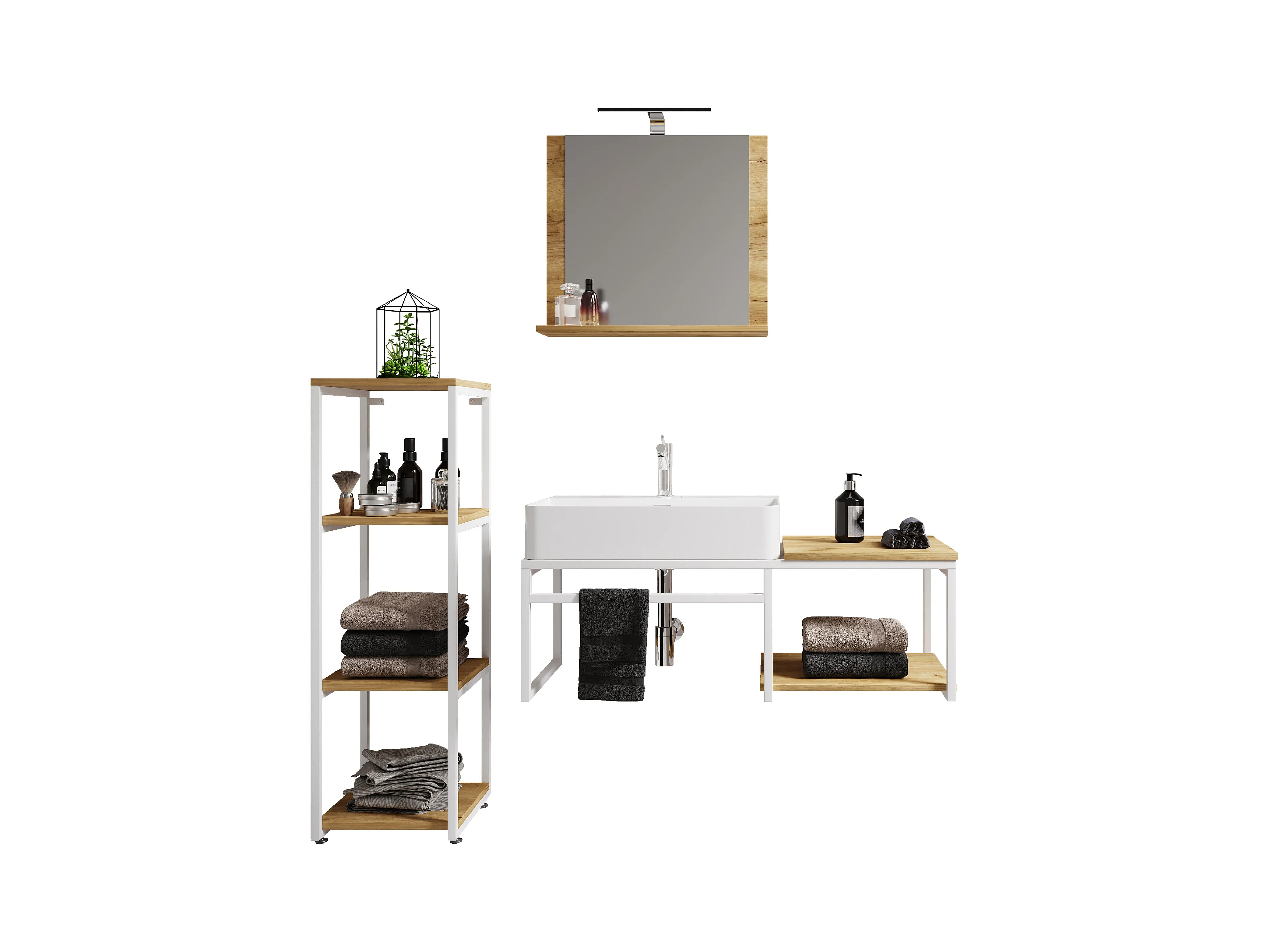 VCM 4 pcs Lavatório Mobiliário Do Banheiro Set Sink Wood Metal Industrial Style Bitila 100 V2 (Branco / Carvalho Mel)