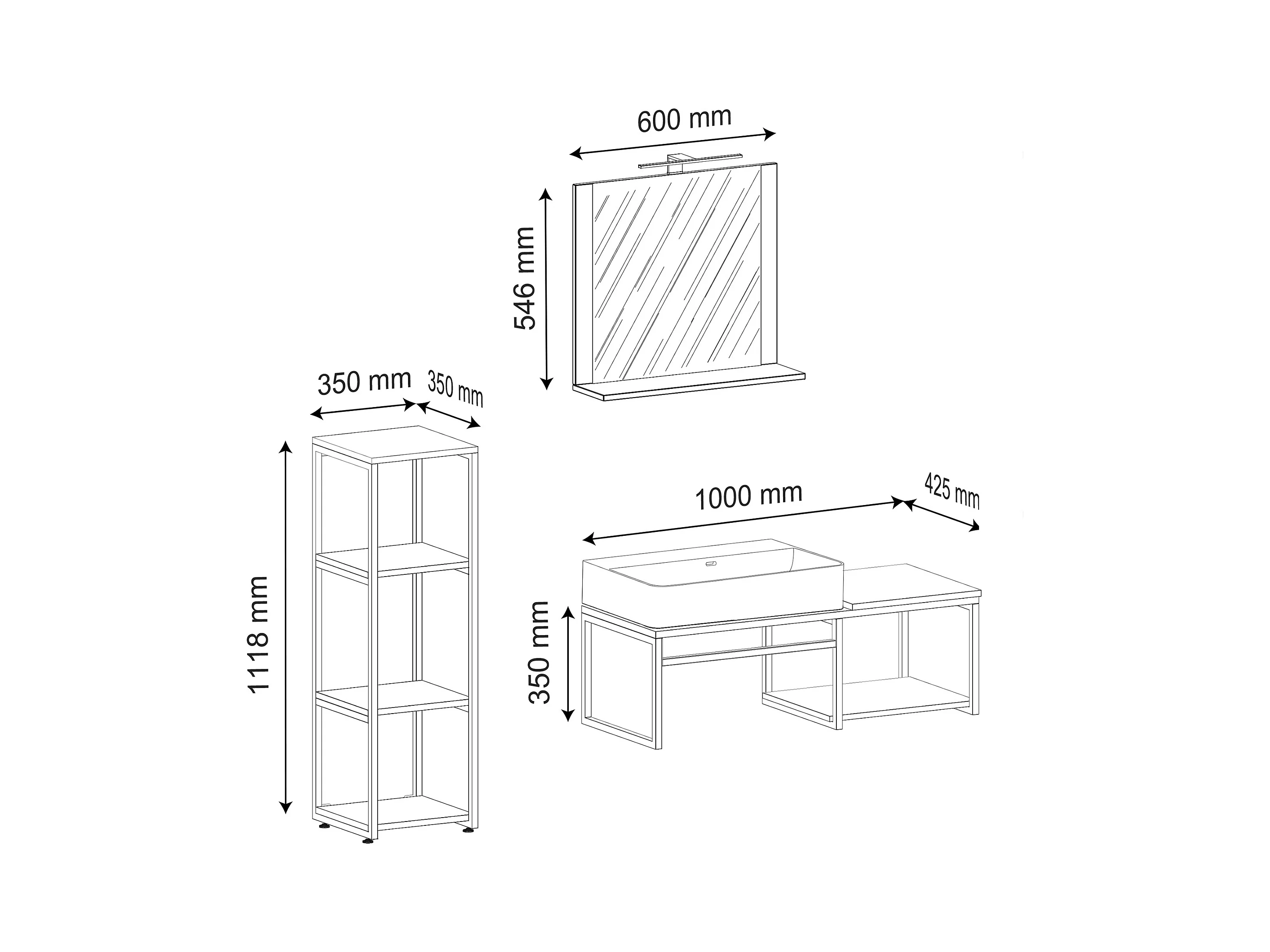 VCM 3 pcs Lavatório Mobiliário Do Banheiro Set Sink Wood Metal Industrial Style Bitila 100 V1 (Branco / Carvalho Mel)