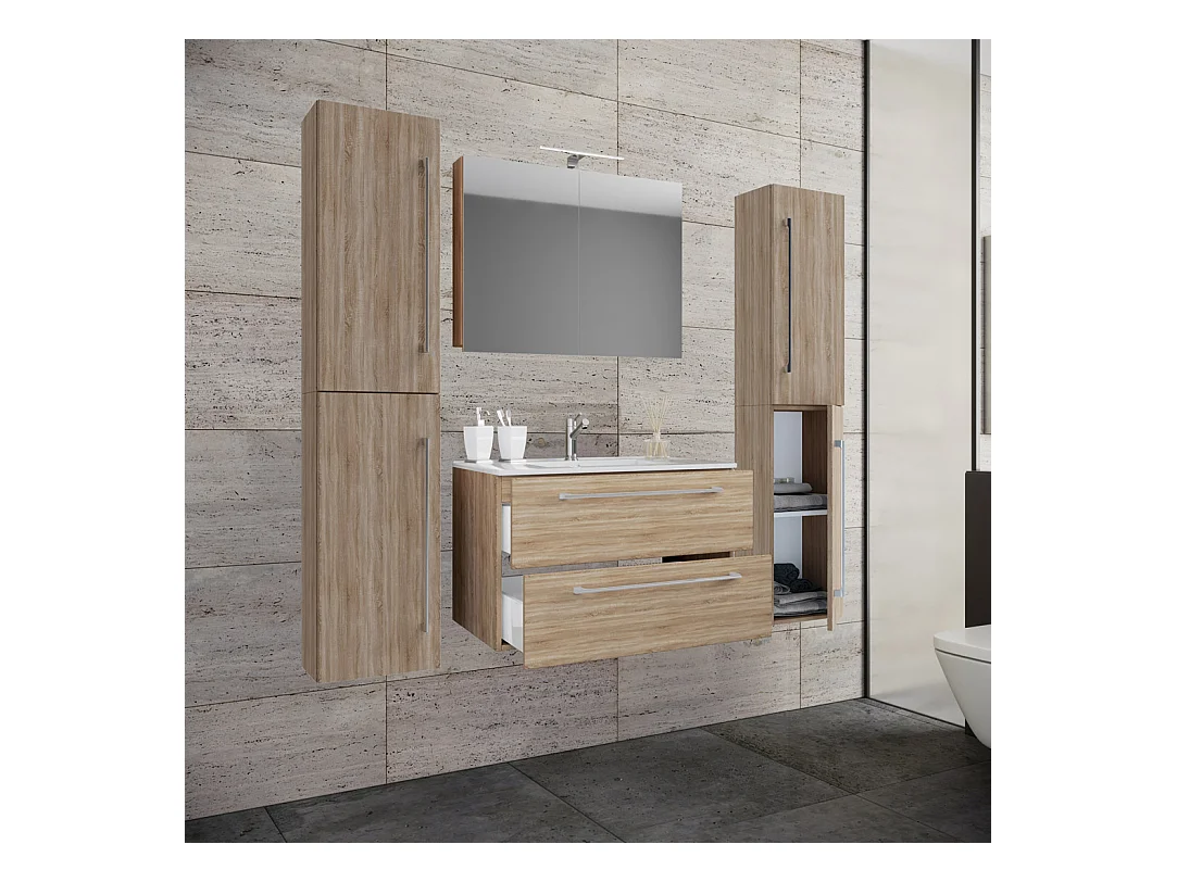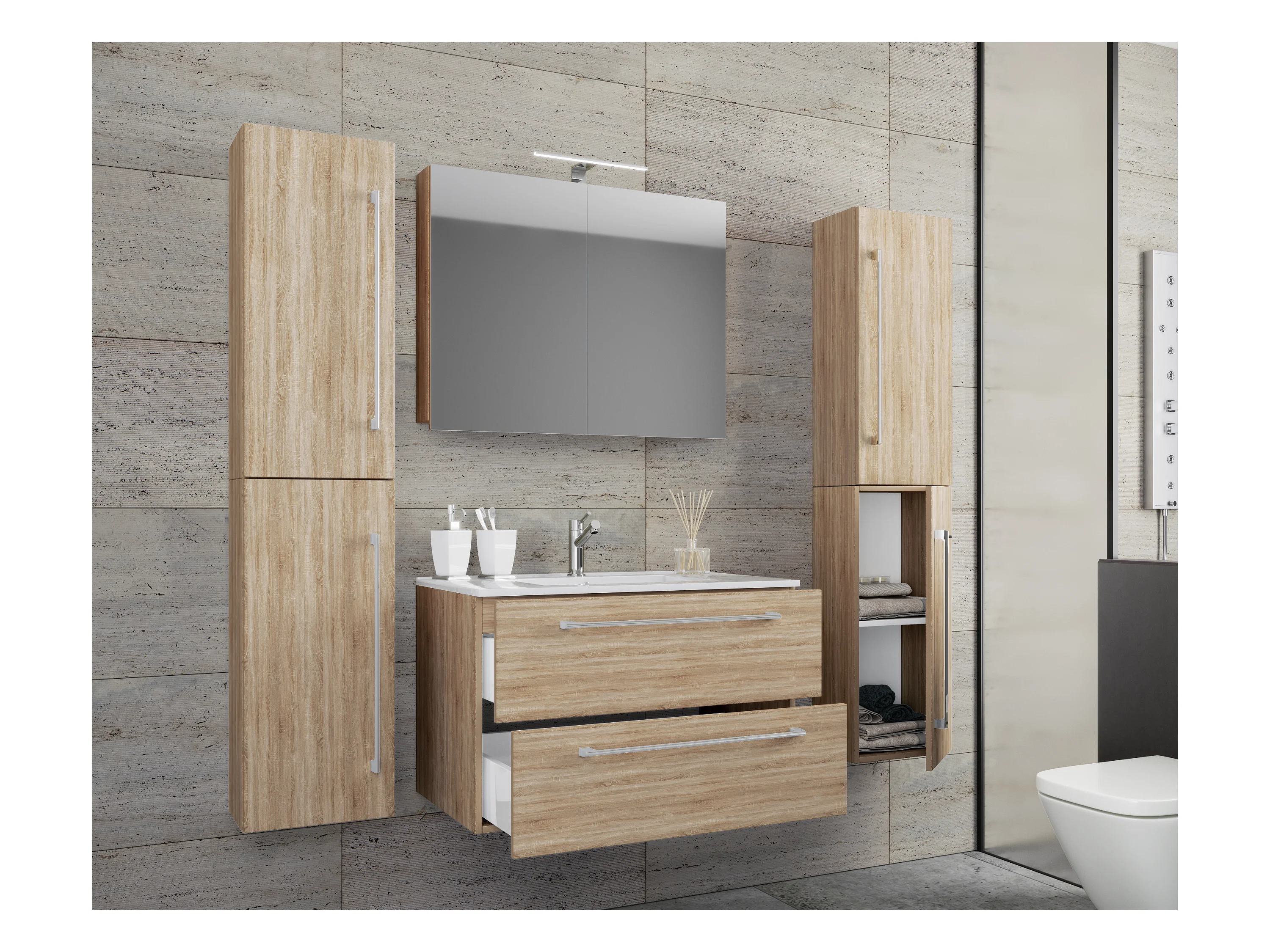 VCM 3 pcs Lavatório | lavatório menor largura do armário 80 cm | conjunto de móveis de banheiro pendurado com espelho de gaveta | Badinos (carvalho mel)