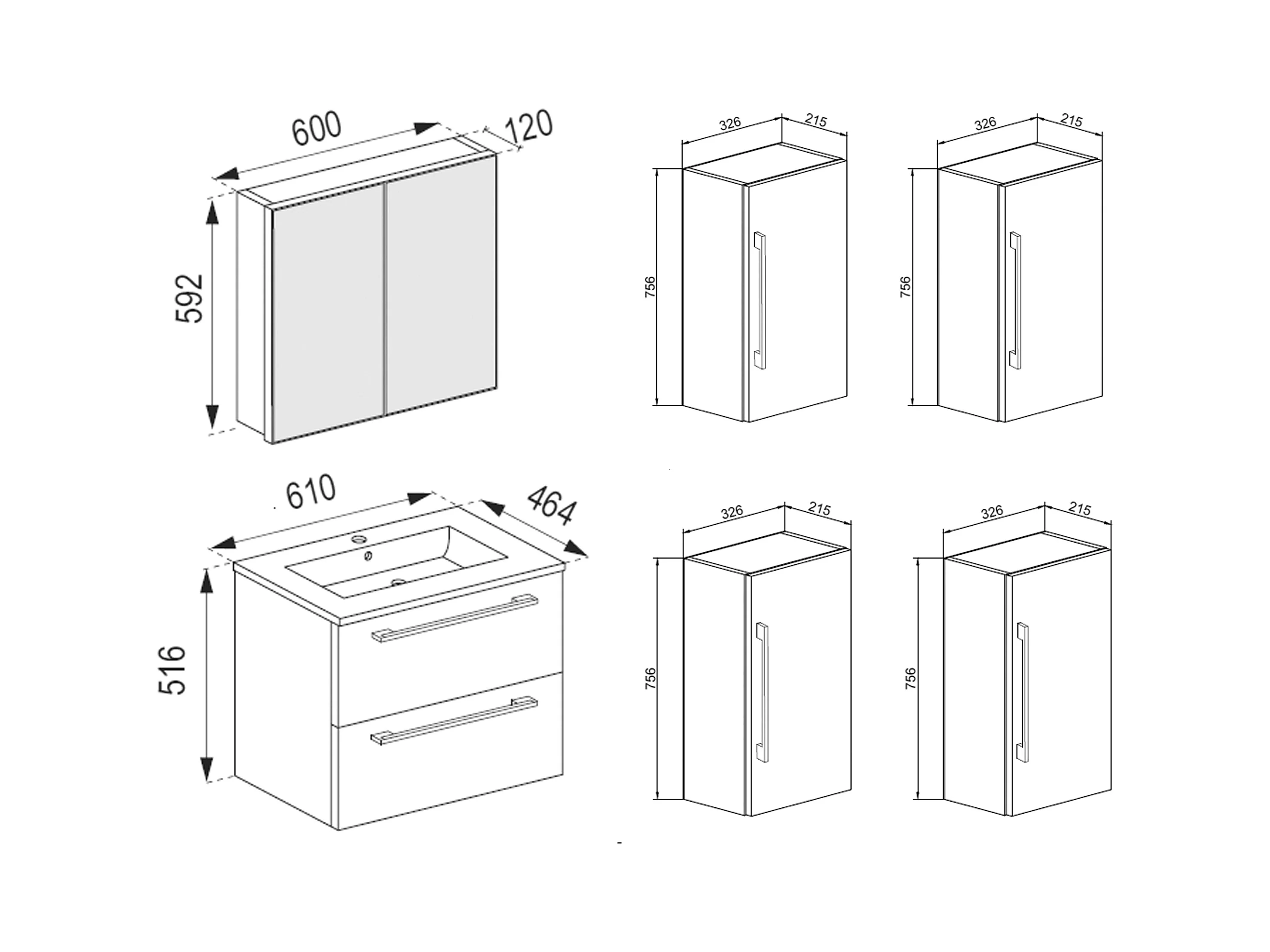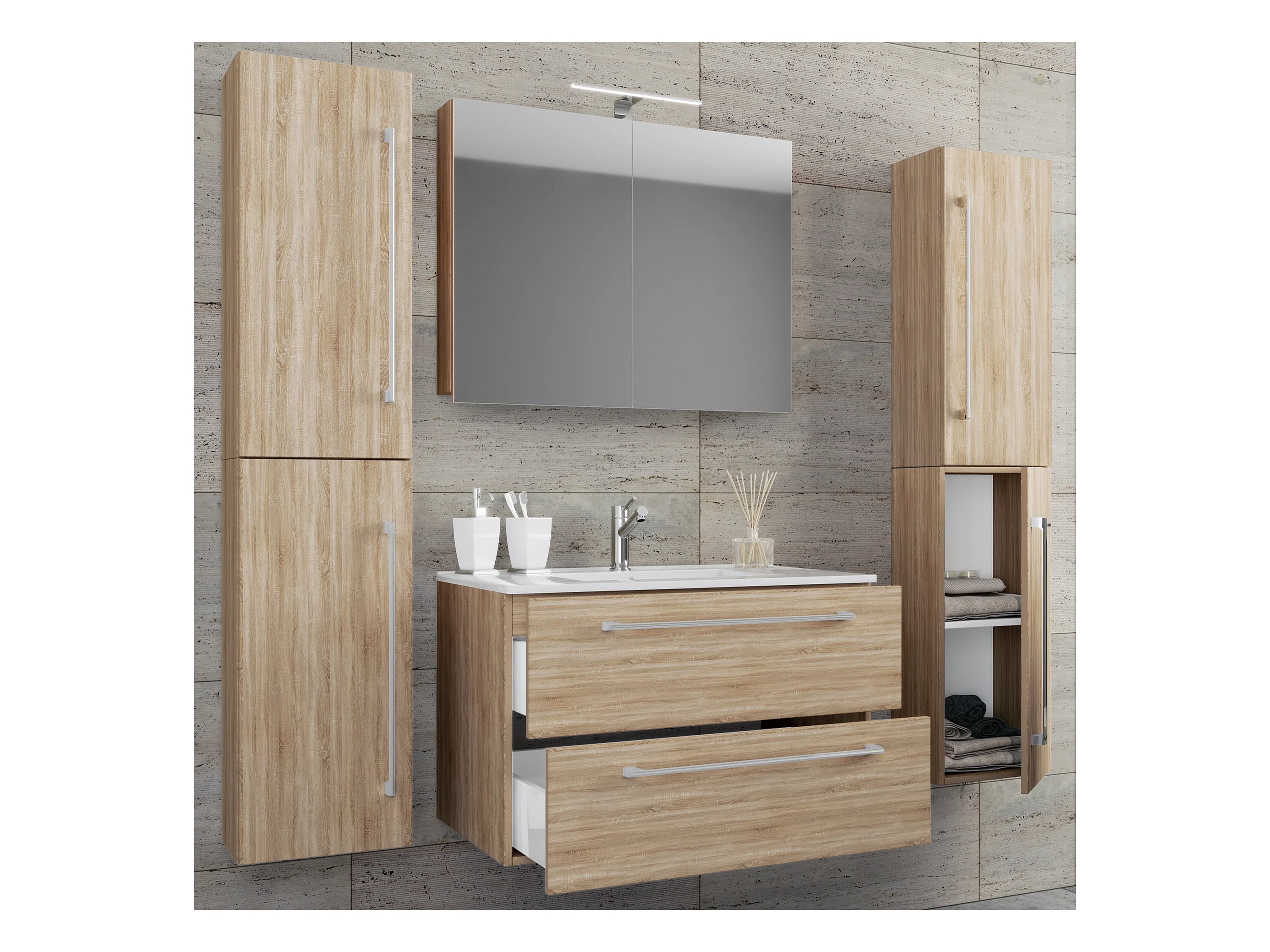 VCM 5pcs Lavatório | lavatório menor largura do armário 60 cm | Móveis de casa de banho com gavetas Portas rotativas Gabinete de espelho | Badinos (Sonoma oak)