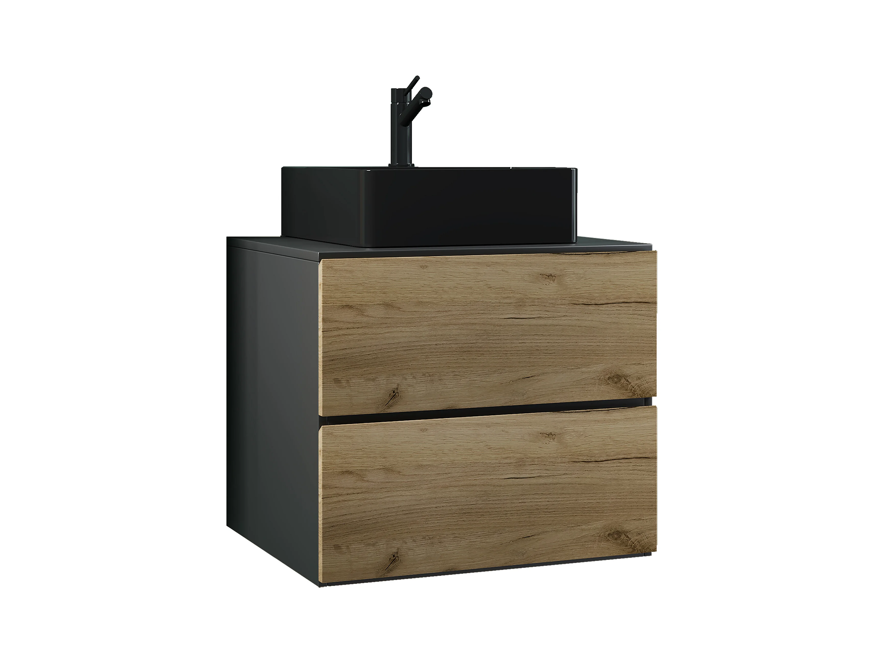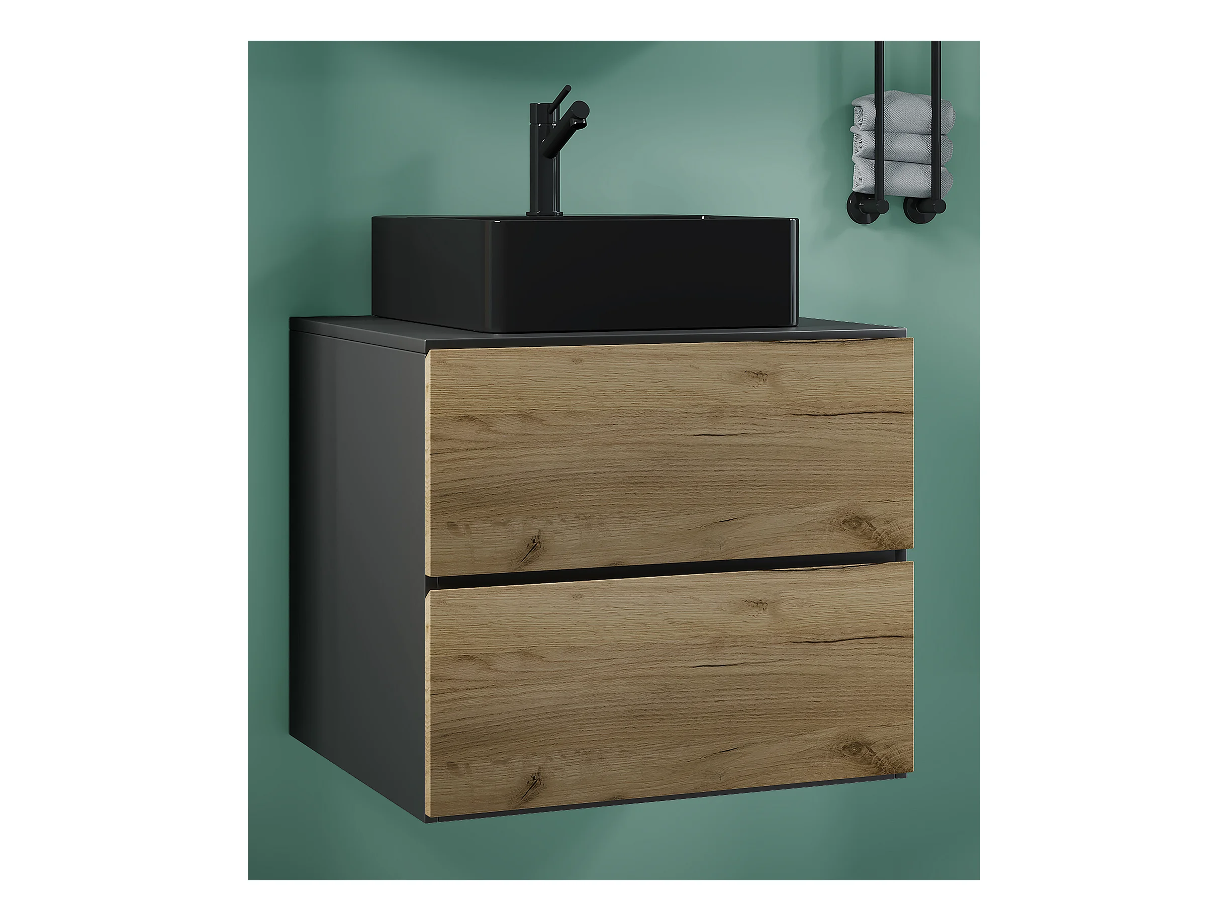 VCM 2 pcs Lavatório | lavatório preto largura inferior do armário 60 cm | Mobiliário para casa de banho com gavetas | Lendas S BL (anthracite / mel oak)