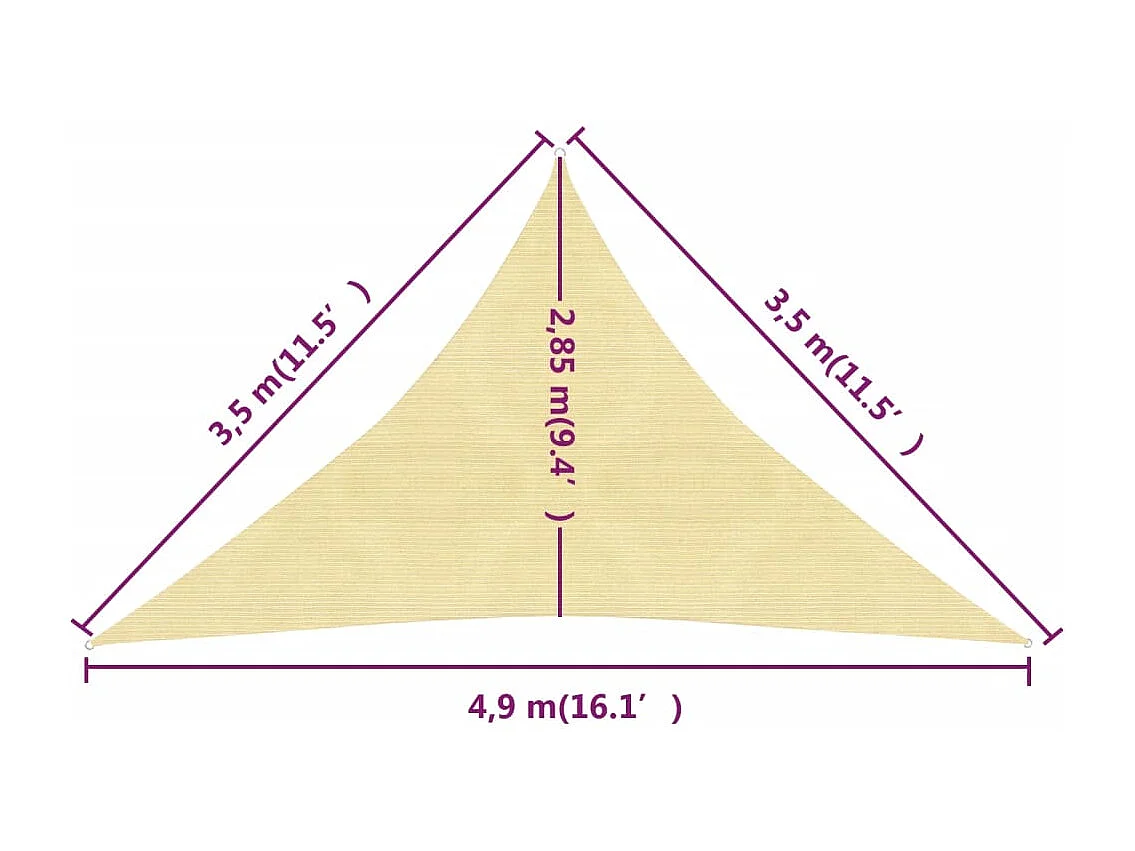 Guarda-sol vela triangular tecido oxford 5x5x6 m bege