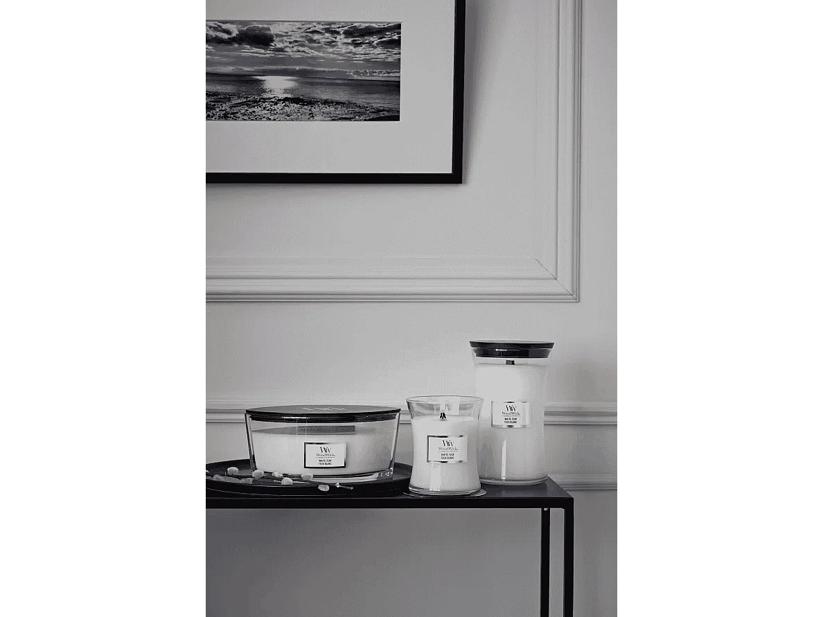 Vela perfumada ampulheta, White Teak, branco 275 gr