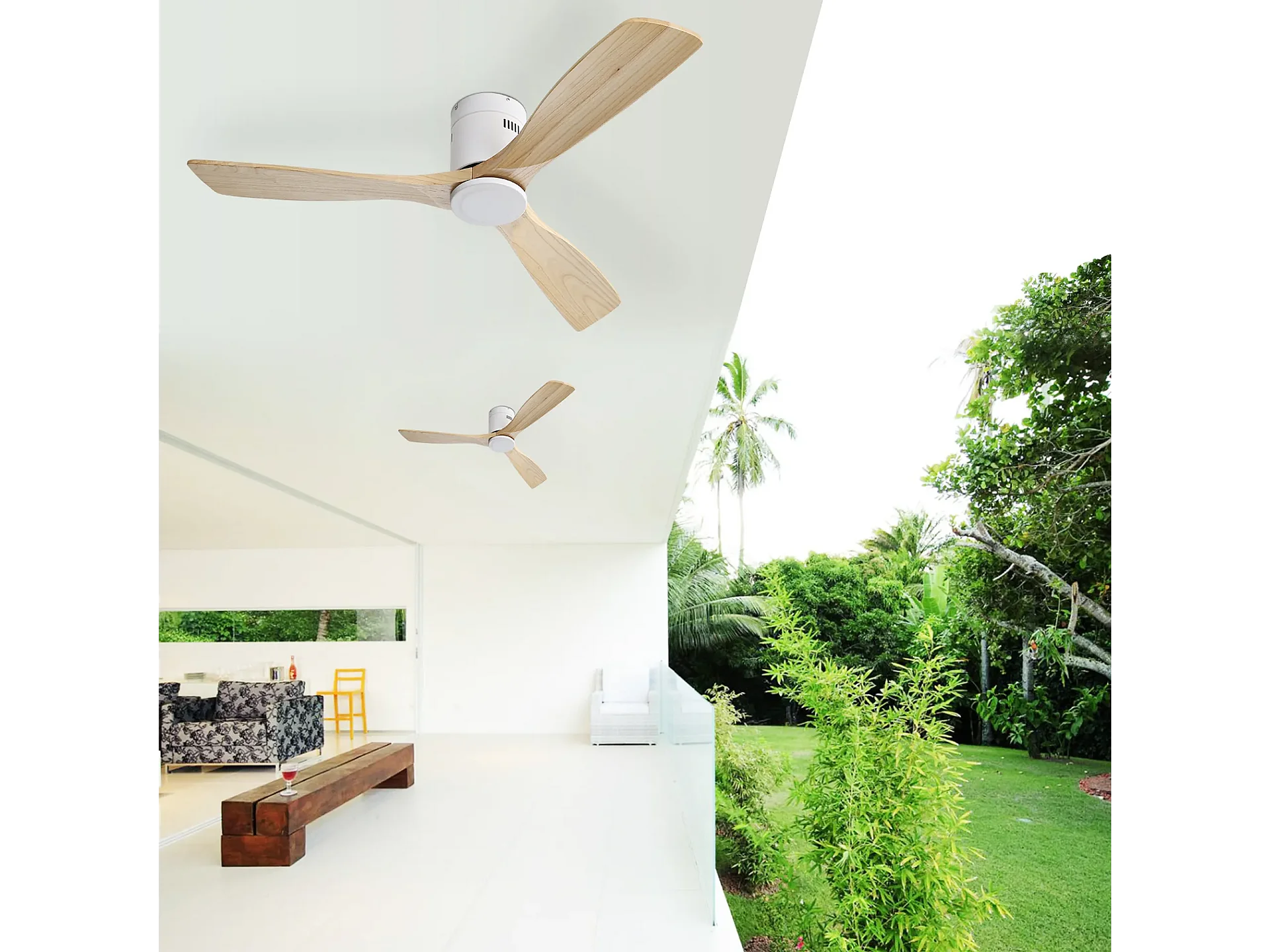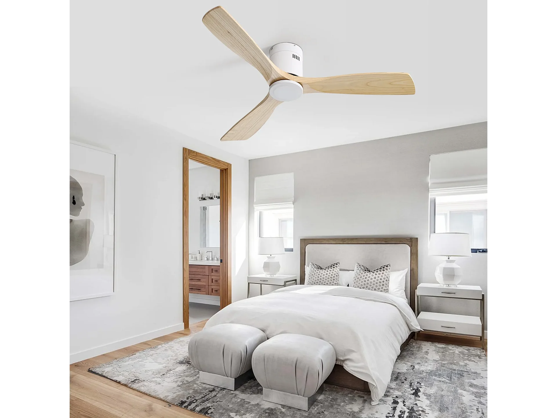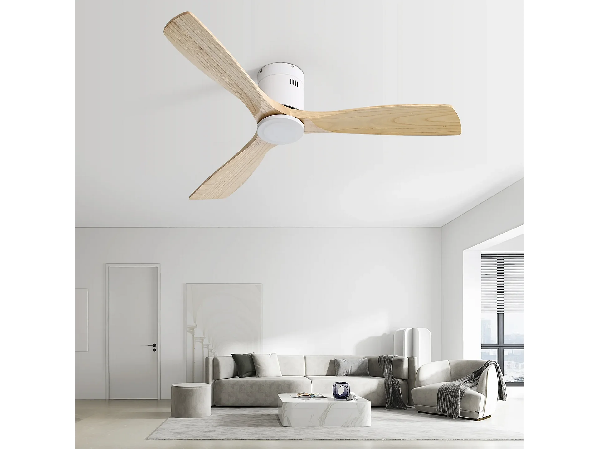 Ventilador de teto de 132 cm, 3 pás de madeira, 6 velocidades e temporizador, motor DC reversível, luz natural