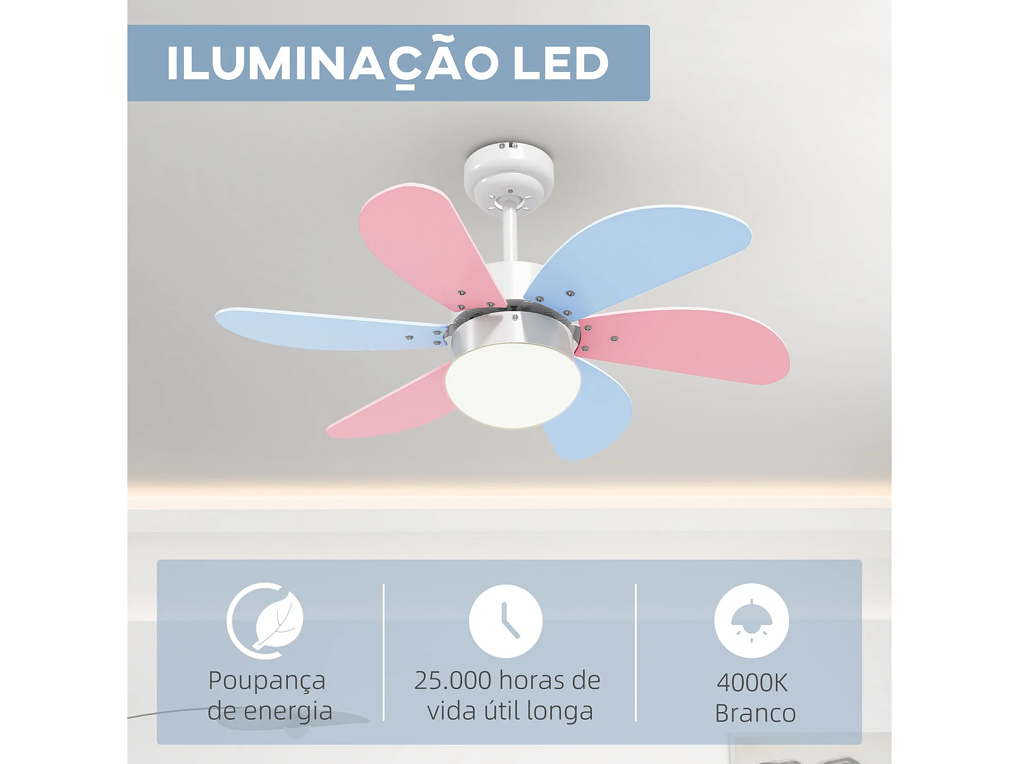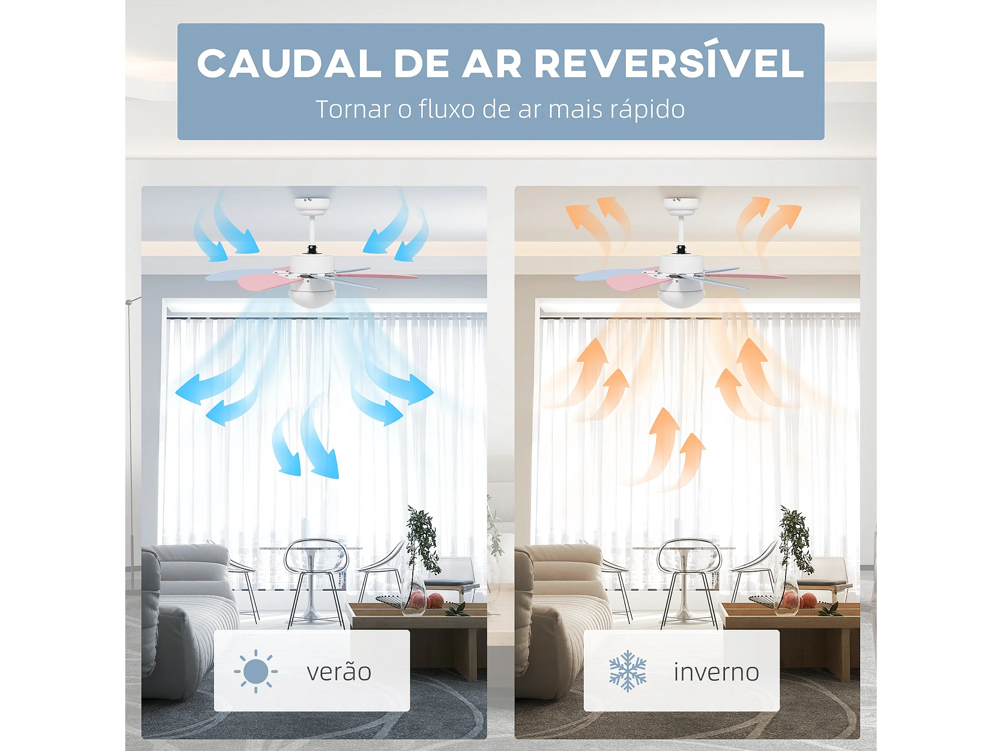 Ventoinha de Teto HOMCOM com Luz LED - Silenciosa, 6 Velocidades, Temporizador e Controlo Remoto