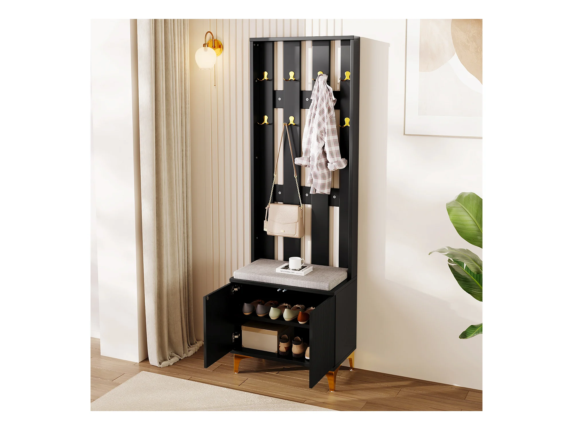 Vestiário de entrada moderno - com cabide e guarda-sapatos - Preto