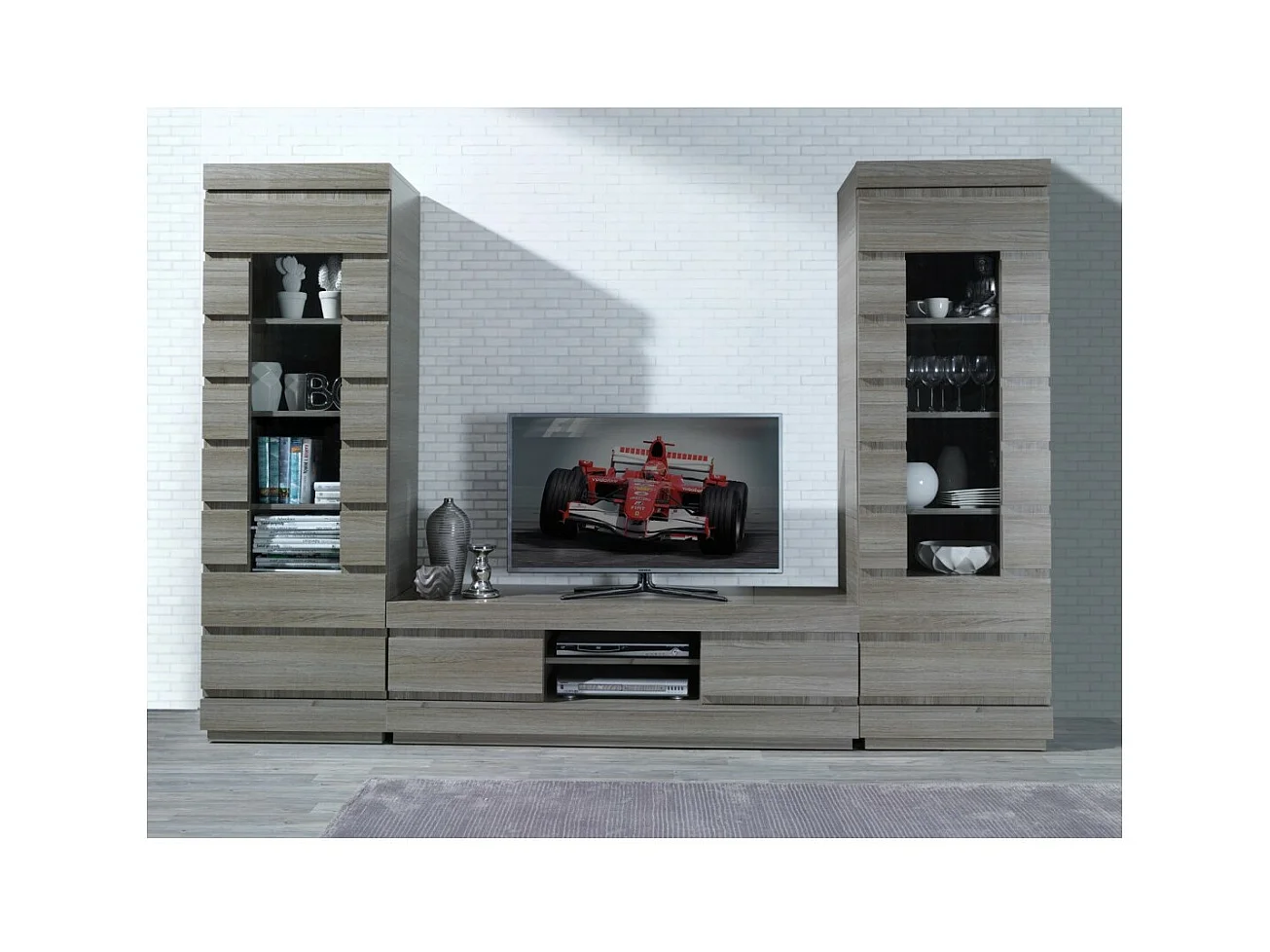 Vitrina design 2 portas coleção PALACE. Cores cinza e carvalho escuro.