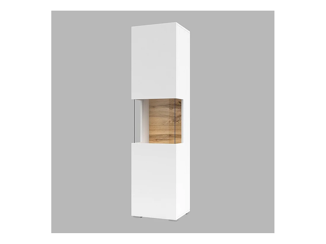 Vitrina 1 porta parcialmente envidraçada coleção EVA. Cor branca e carvalho.