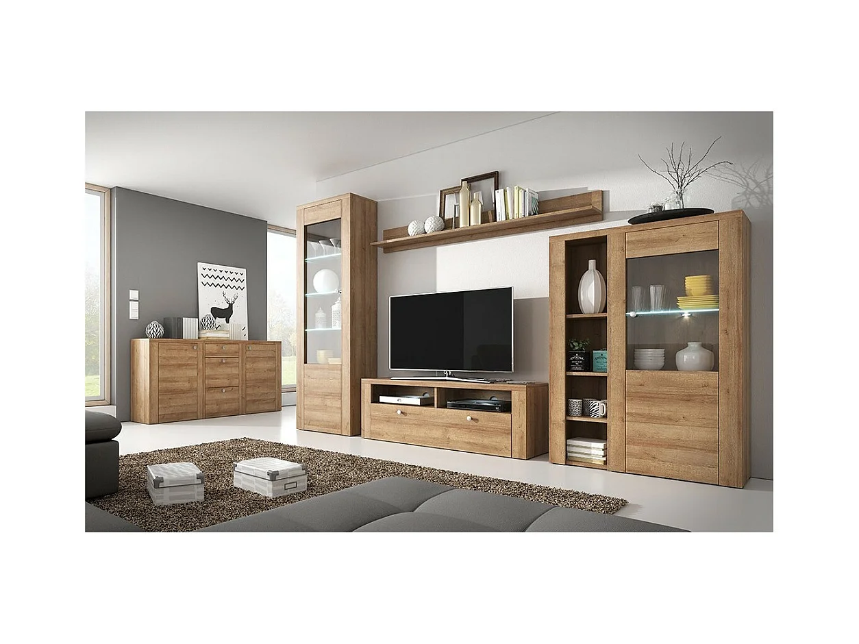 Vitrine couleur chêne avec portes vitrées - Collection MONDO