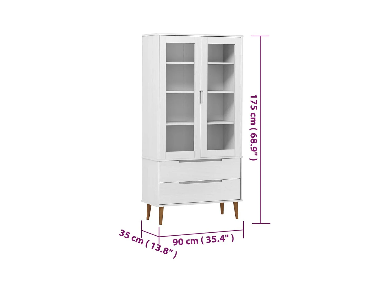 Vitrina MOLDE 90x35x175 cm pinho maciço branco