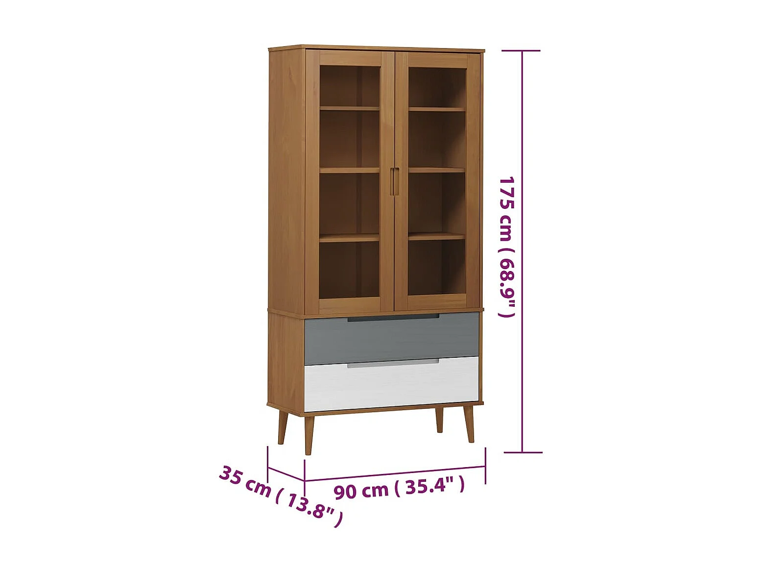 Vitrina MOLDE 90x35x175 cm pinho maciço castanho