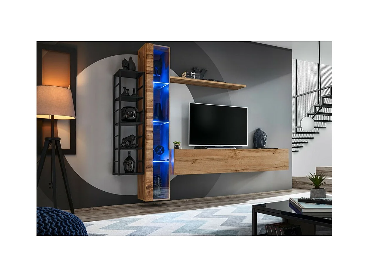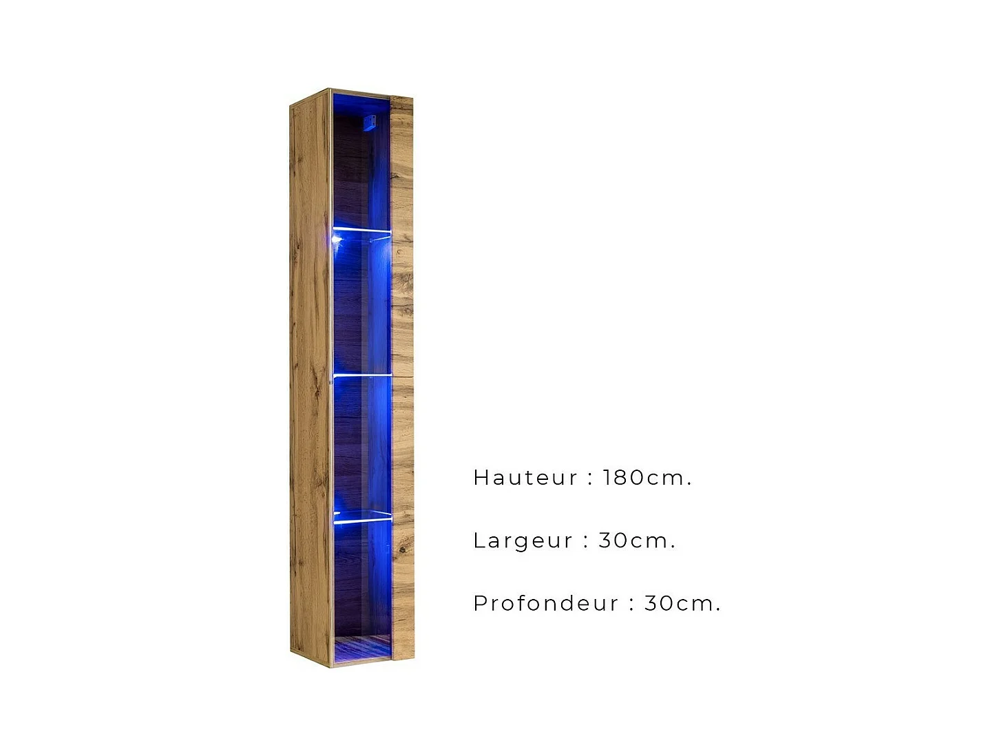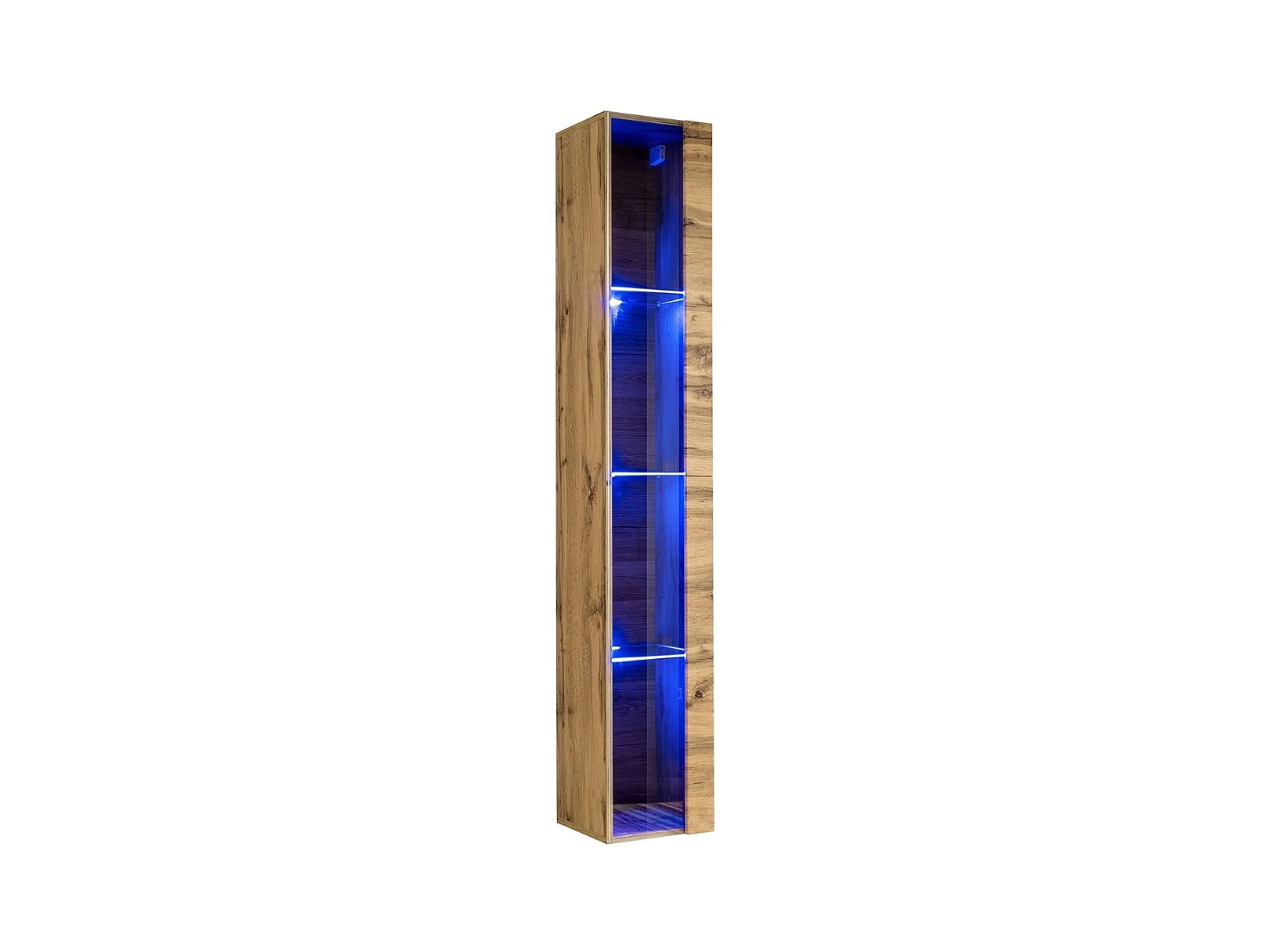 Vitrina suspensa pequena modelo cor carvalho para sala de estar coleção SWITCH. 1 porta de vidro com iluminação LED inclusa.