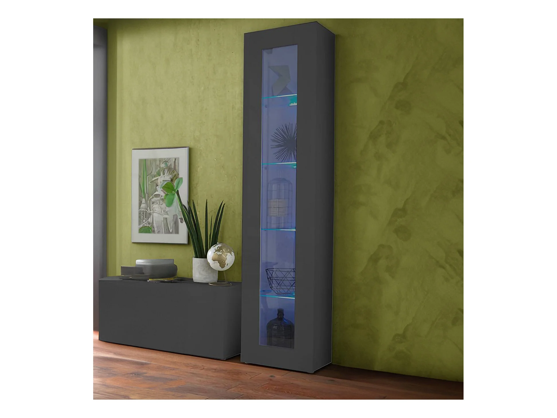 Vitrine Dndi, aparador 1 porta com prateleiras de vidro, Móveis de sala multiuso, 100% Fabricado na Itália, 40x30h180 cm, Antracite