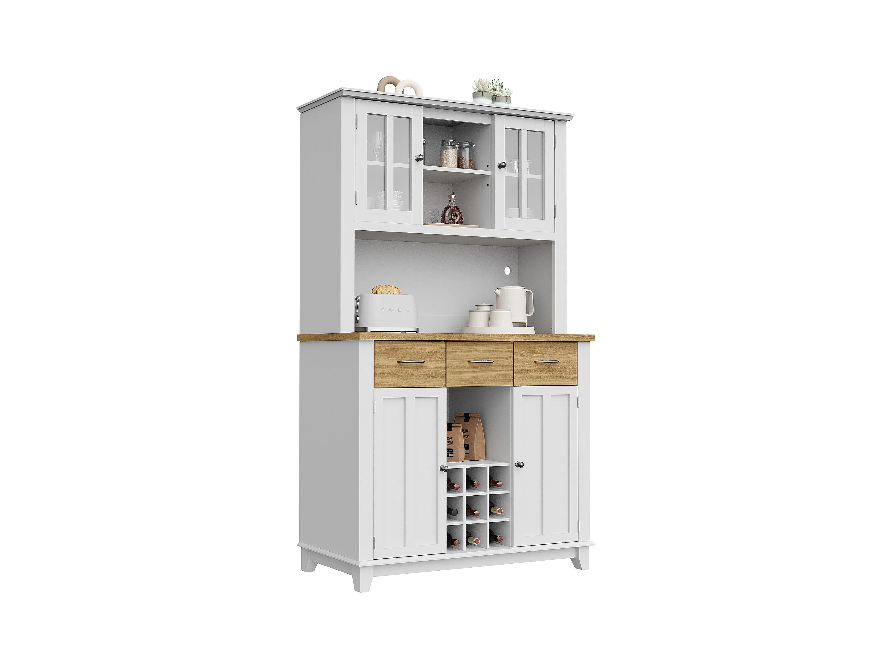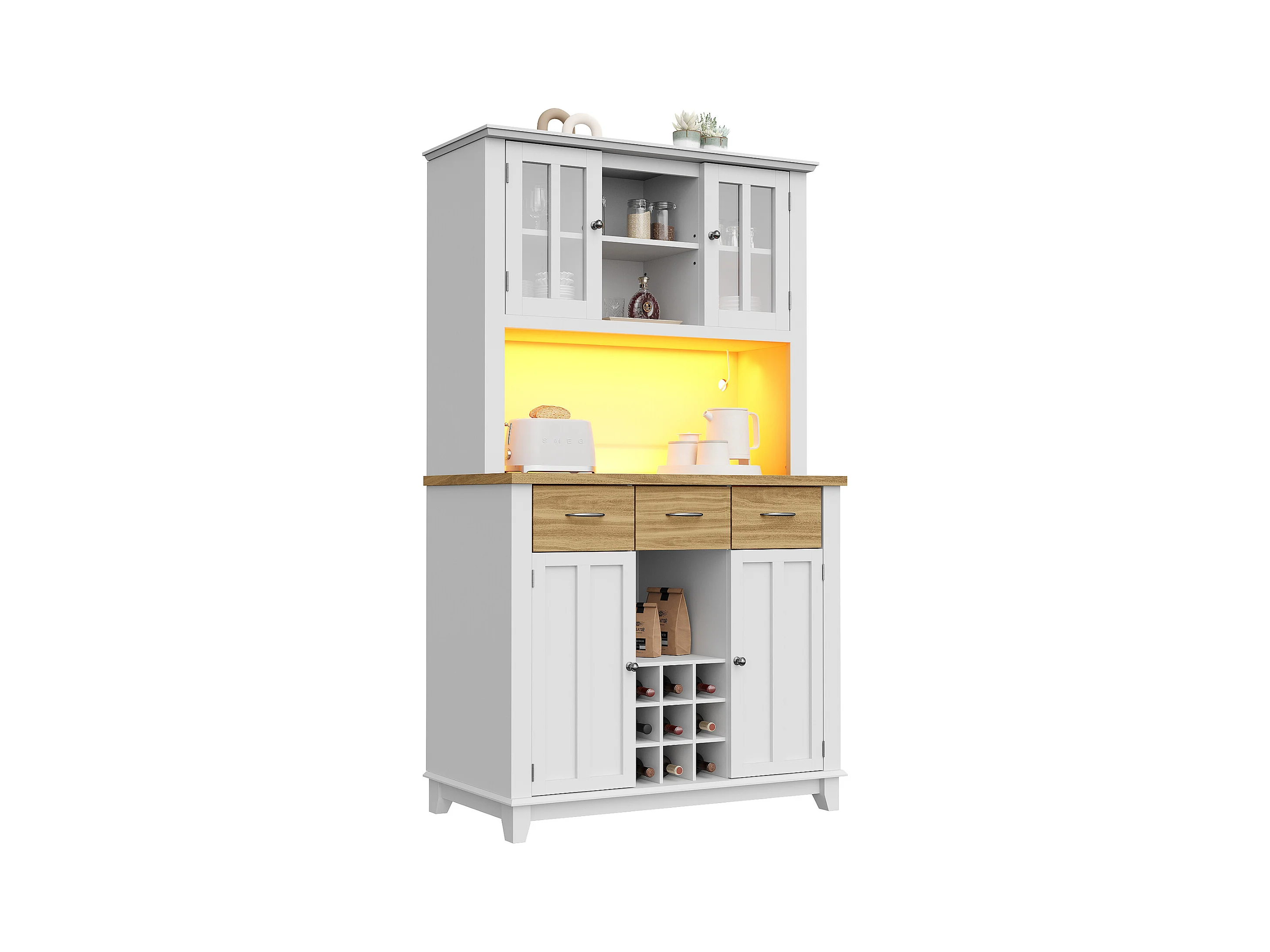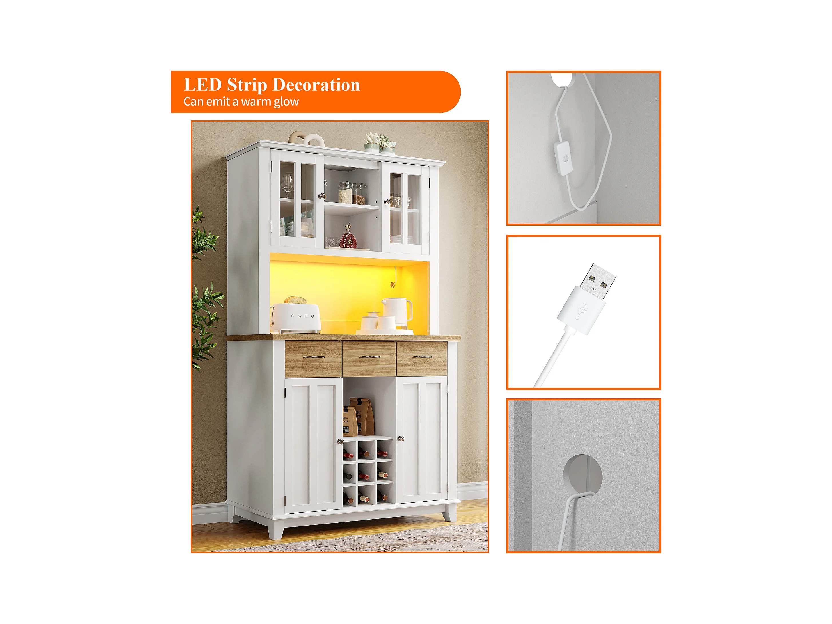 Vitrine、Aparador de cozinha com LED - A 180cm - grande espaço de arrumação - Branco e Natural