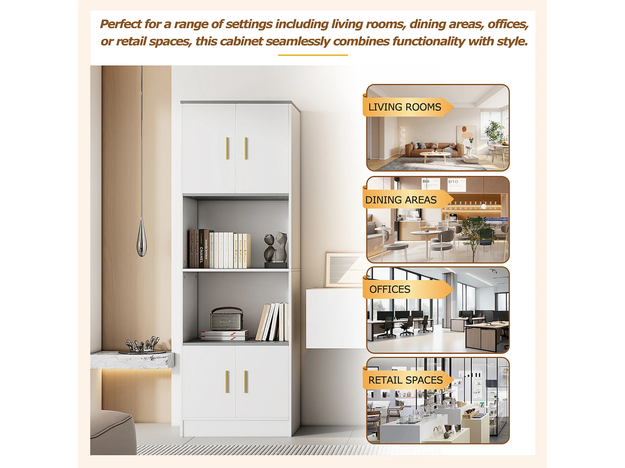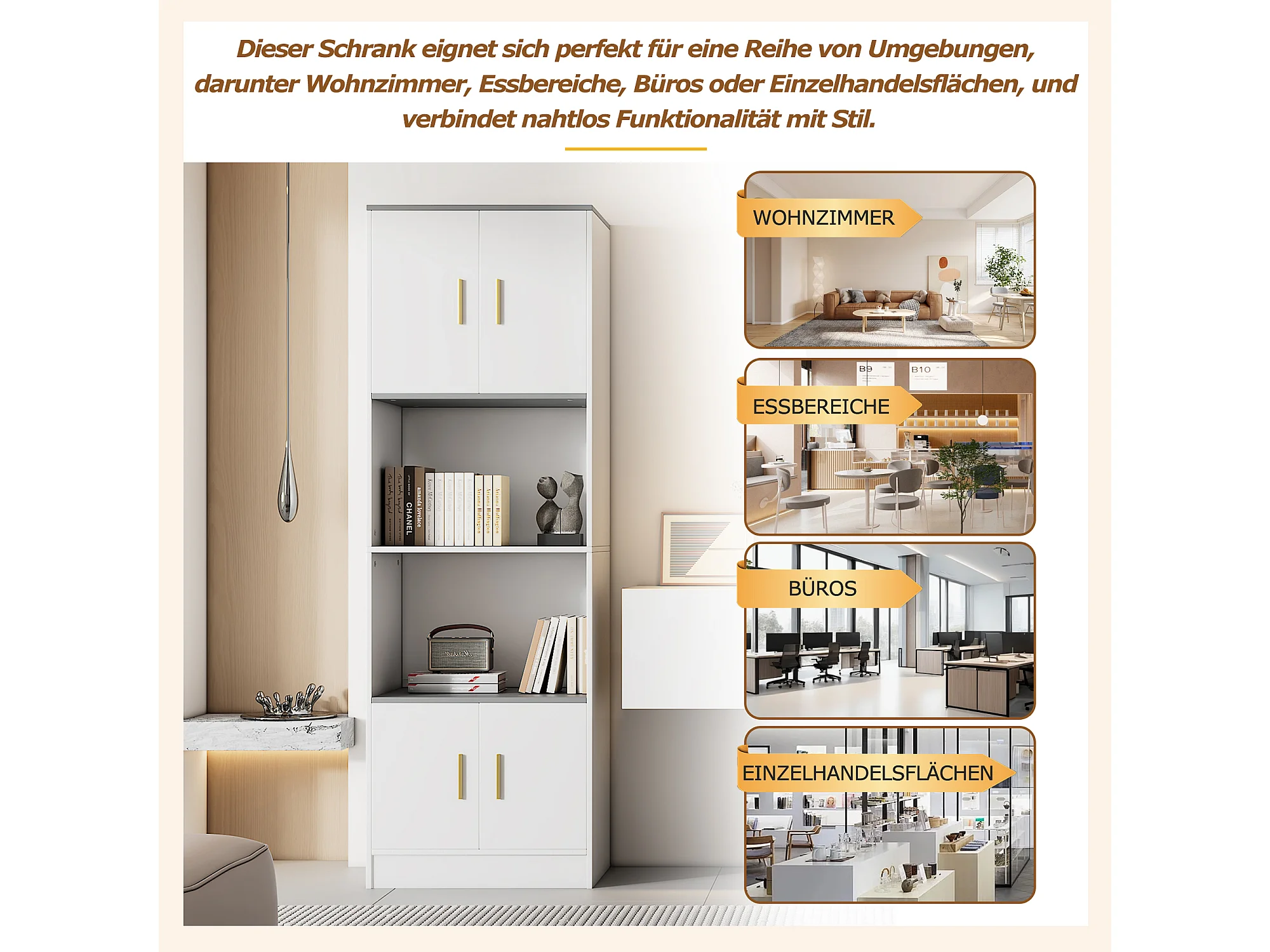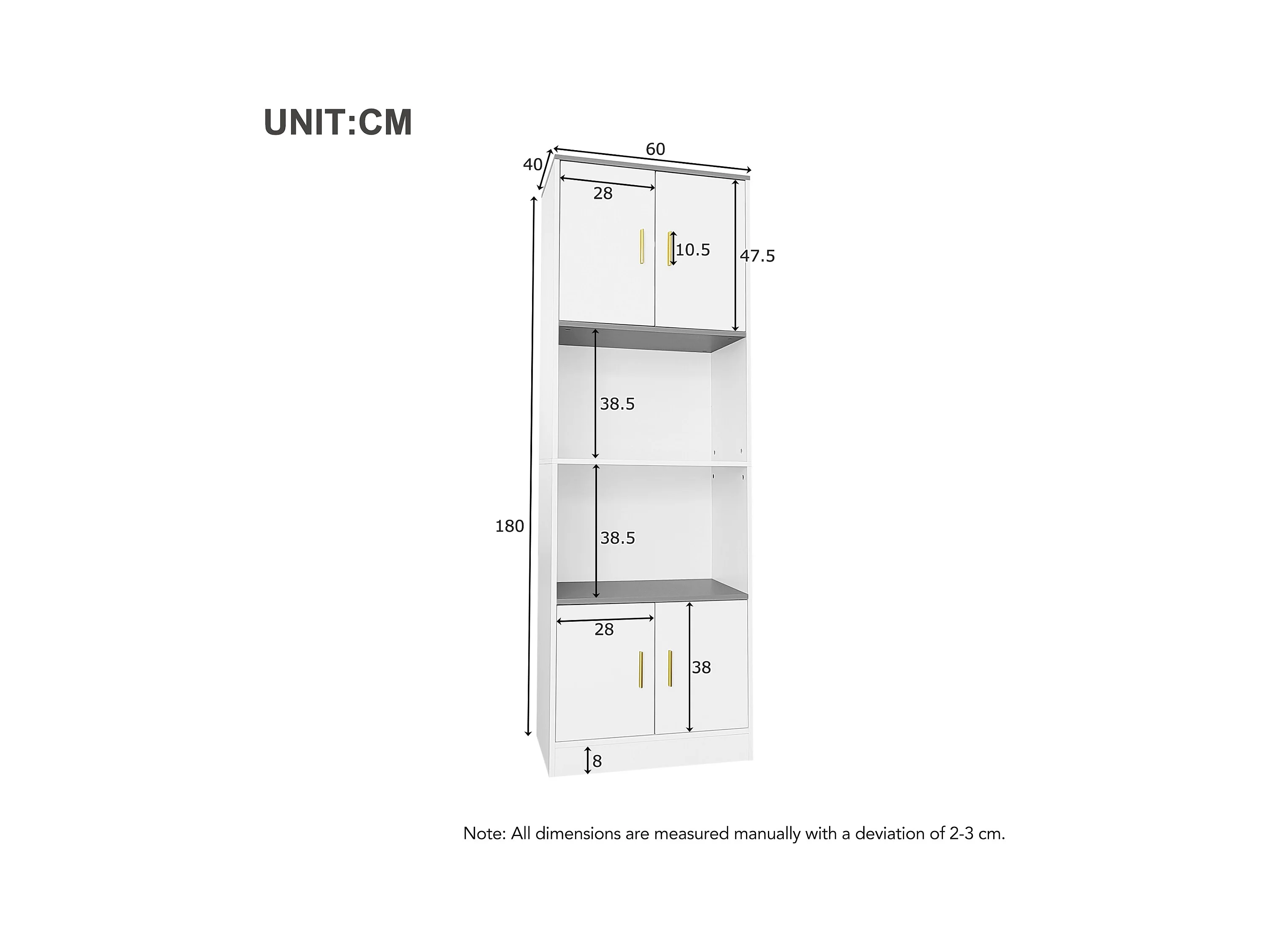 Vitrine com 4 portas e 2 prateleiras - 60 x 40 x 180 cm - Aglomerado - Branco
