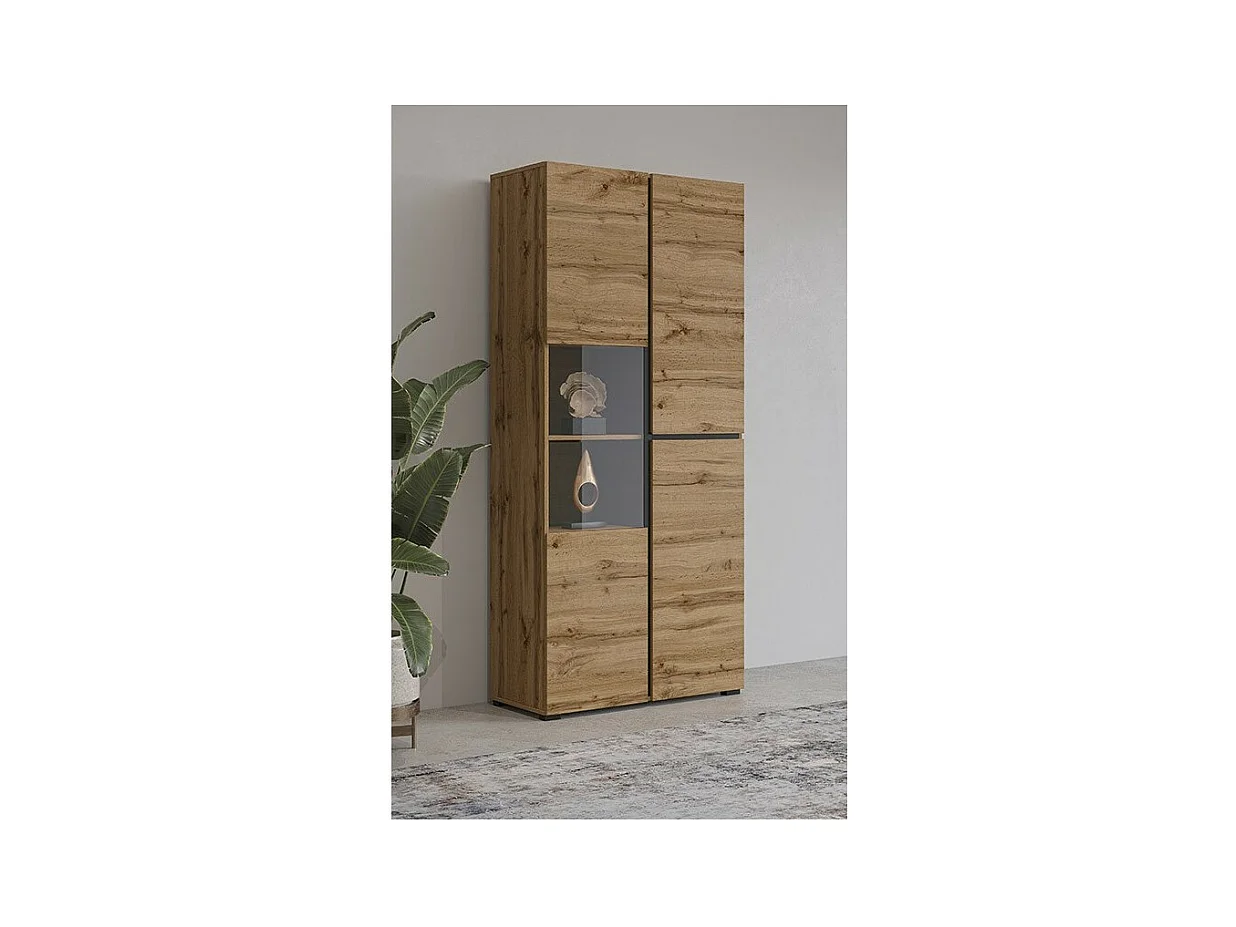 Vitrine couleur chêne avec portes vitrées - Collection MONDO