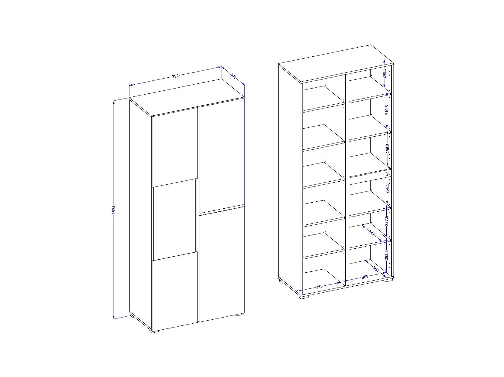 Vitrine pequeno modelo design nas cores carvalho e branco brilhante coleção SINATRA.
