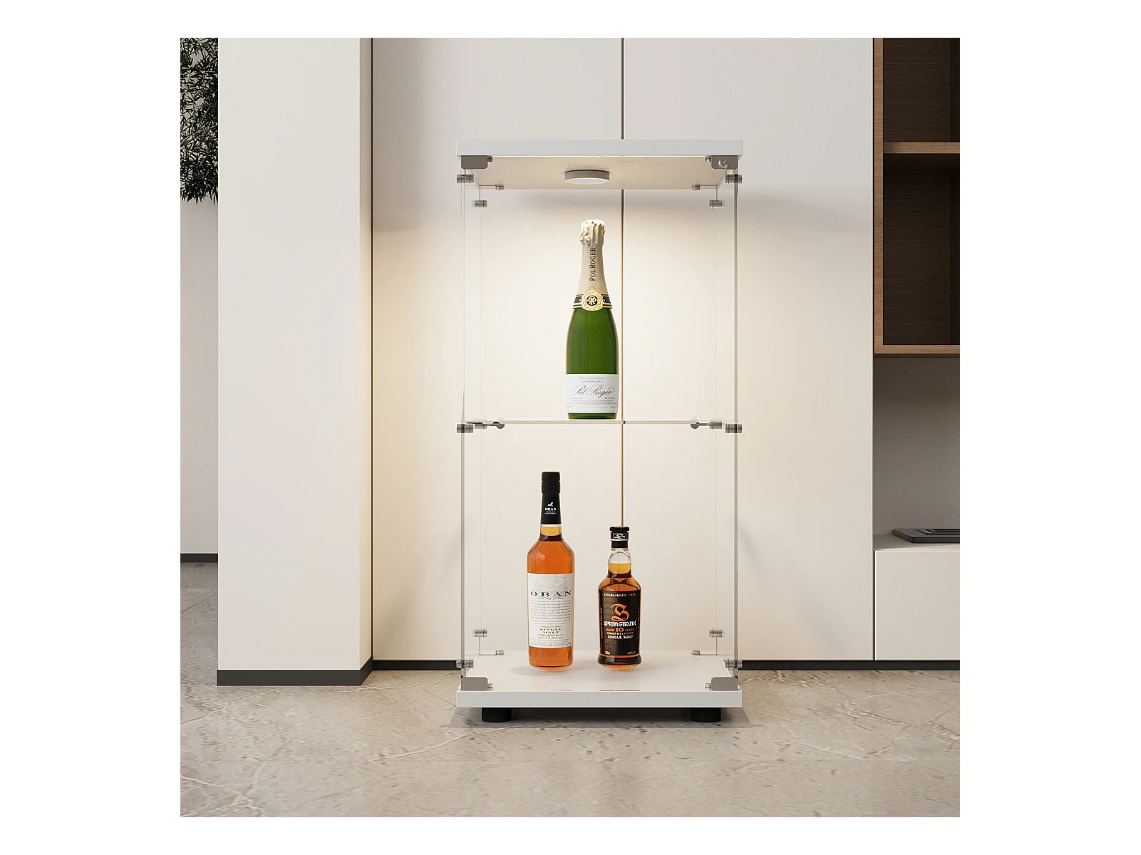 Vitrine de vidro de parede dupla 40*86*36,5 cm, com trava anti-roubo e iluminação LED, branca