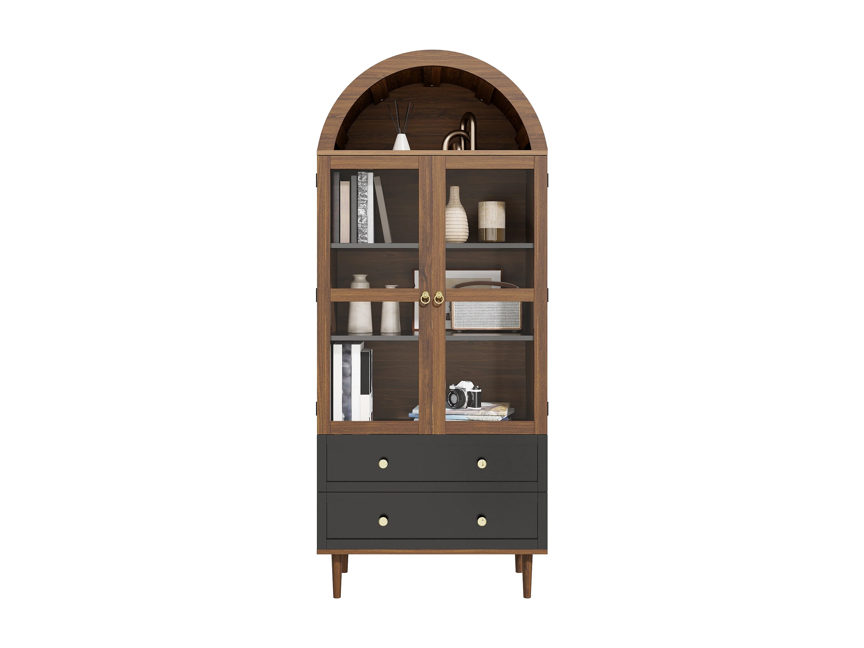 Vitrine moderna 70x38x165 cm - 2 gavetas e 2 portas - com prateleiras ajustáveis - Design curvado - MDF - Marrom