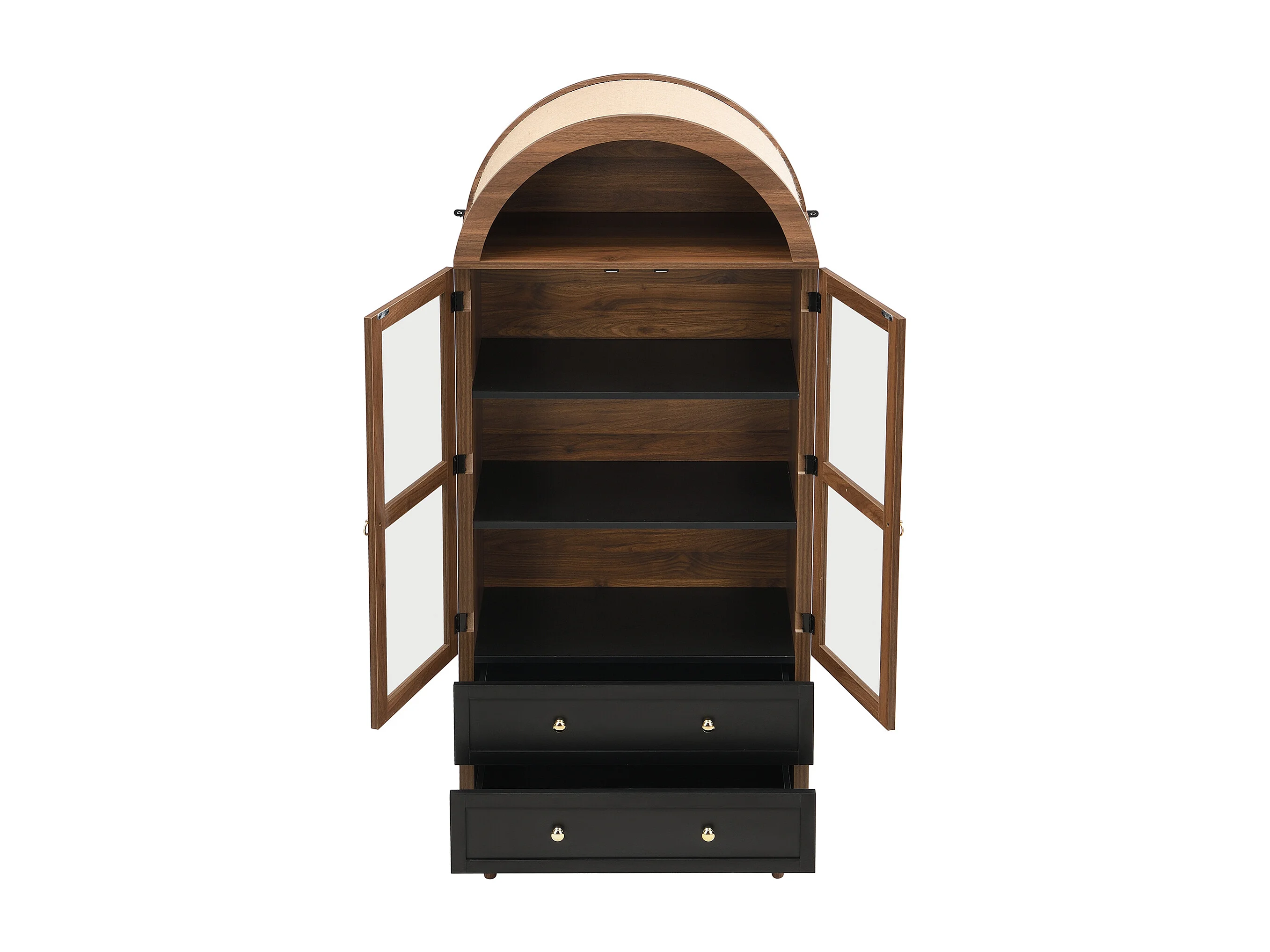 Vitrine 75x35x164.5 cm - 2 portas - Painel de vidro + prateleira multicamadas + gaveta oculta - Nogueira