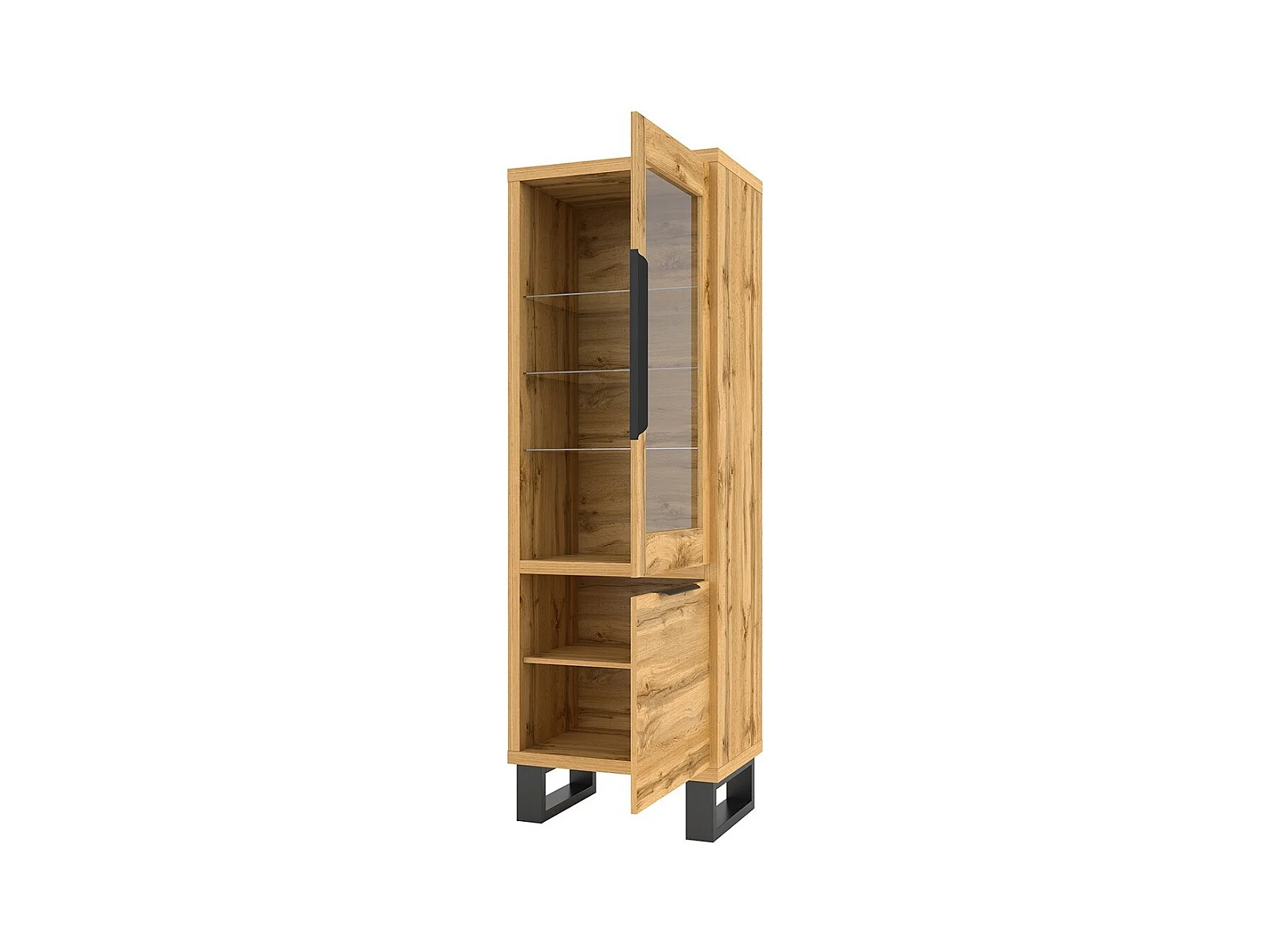 Vitrina alta design 1 porta, coleção SANTIAGO. Cor carvalho.