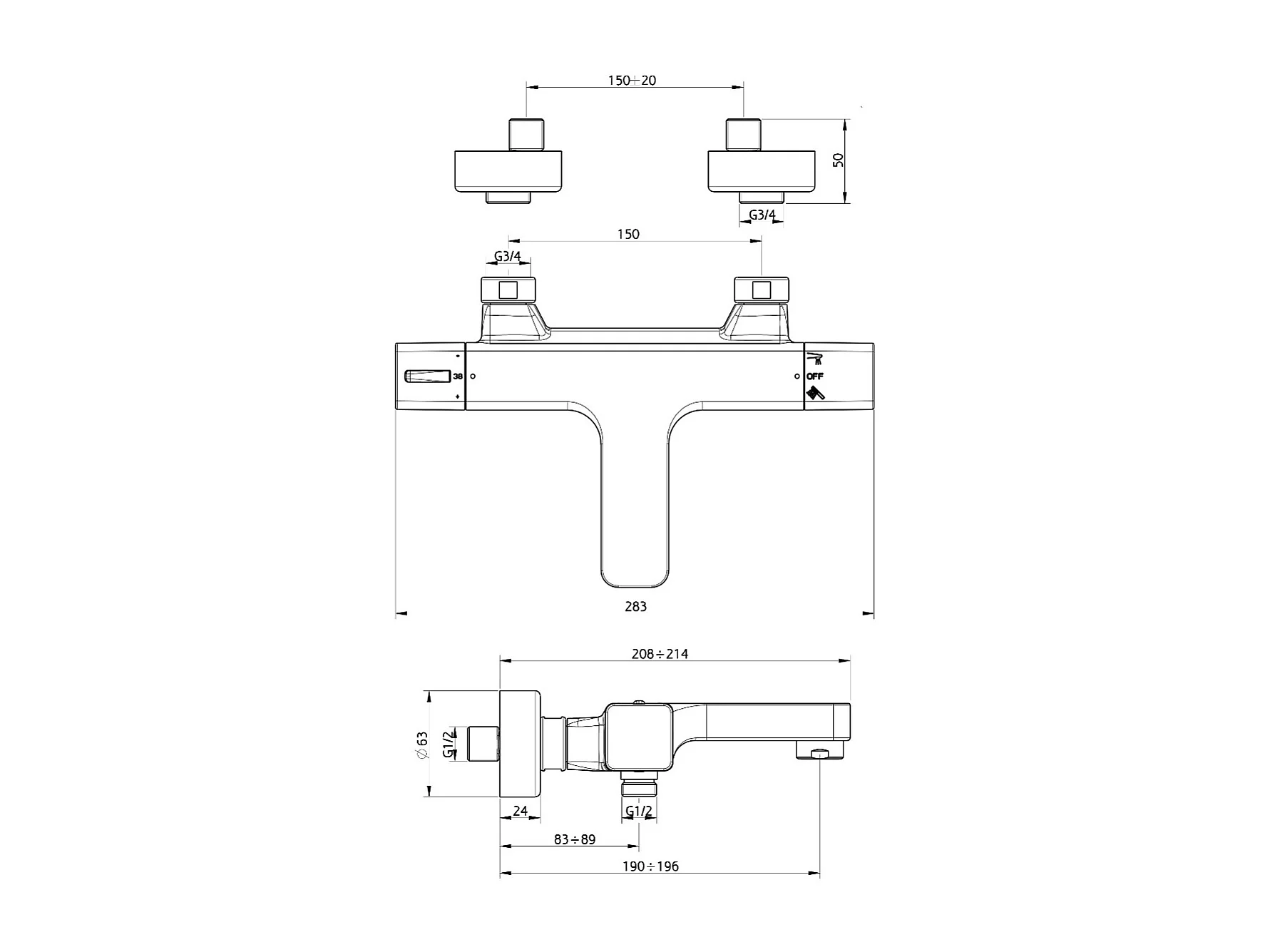 Voluto Misturador termostático para banheira e duche cromado Huber