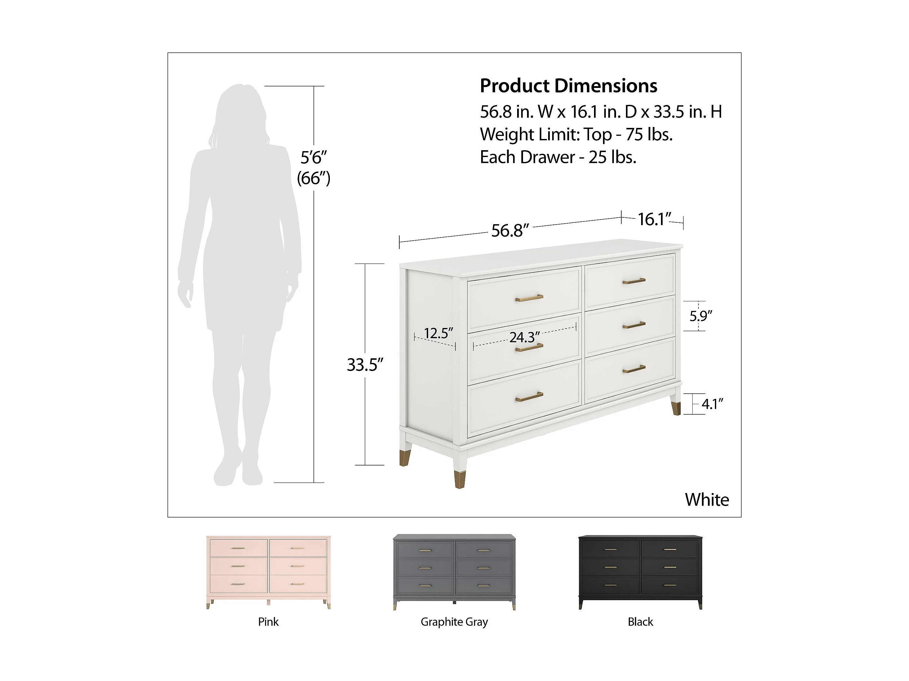 Westerleigh | Cómoda com 6 Gavetas em MDF Branco