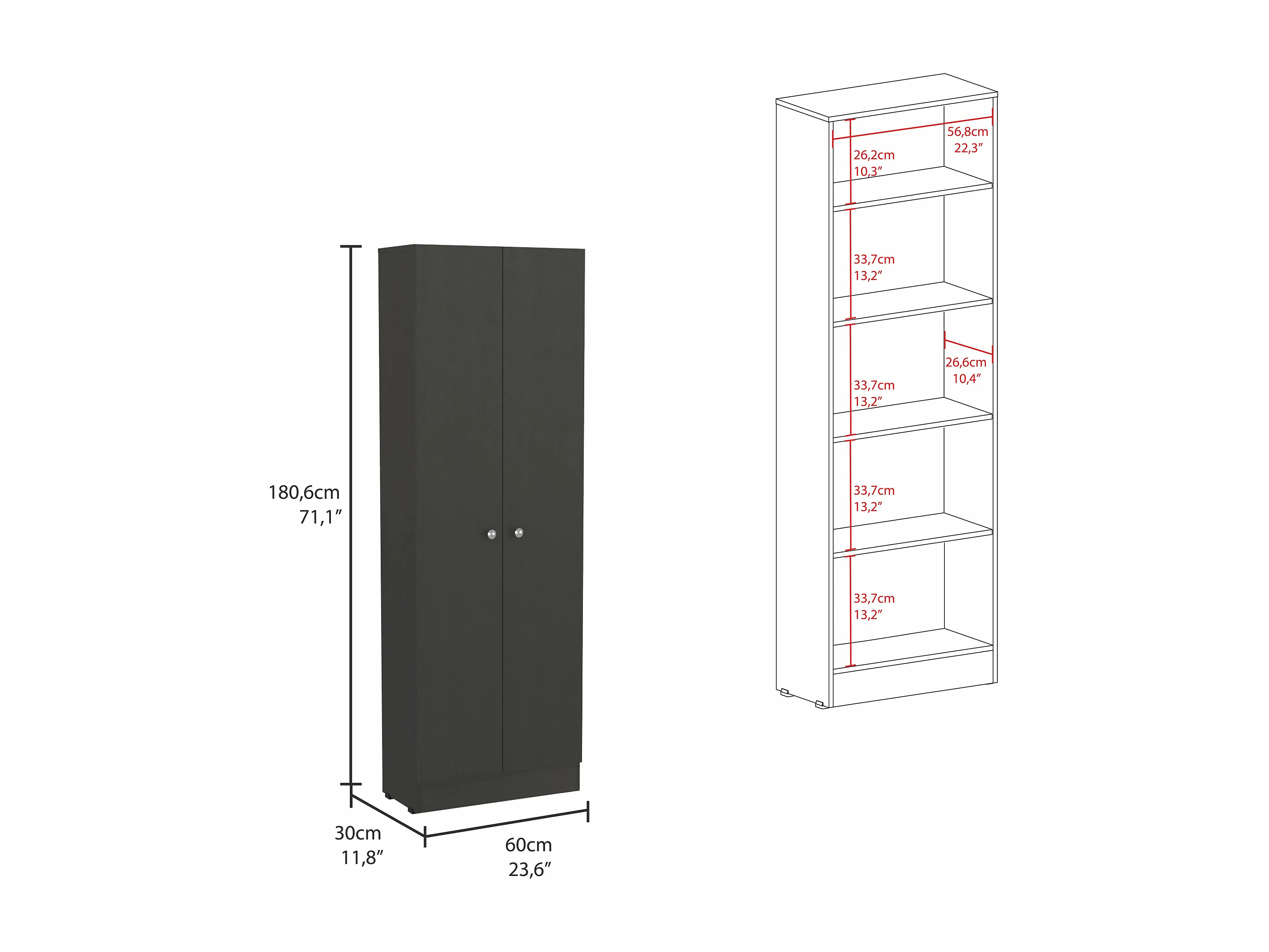 Z 60 Armário multifunções com duas portas e prateleiras interiores , 180.59 cm X 59.94 cm X 29.97 cm , Preto
