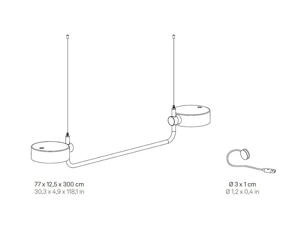 Zafferano SUPER O Lâmpada LED suspensa preta recarregável e regulável - 2 Módulos de Luz